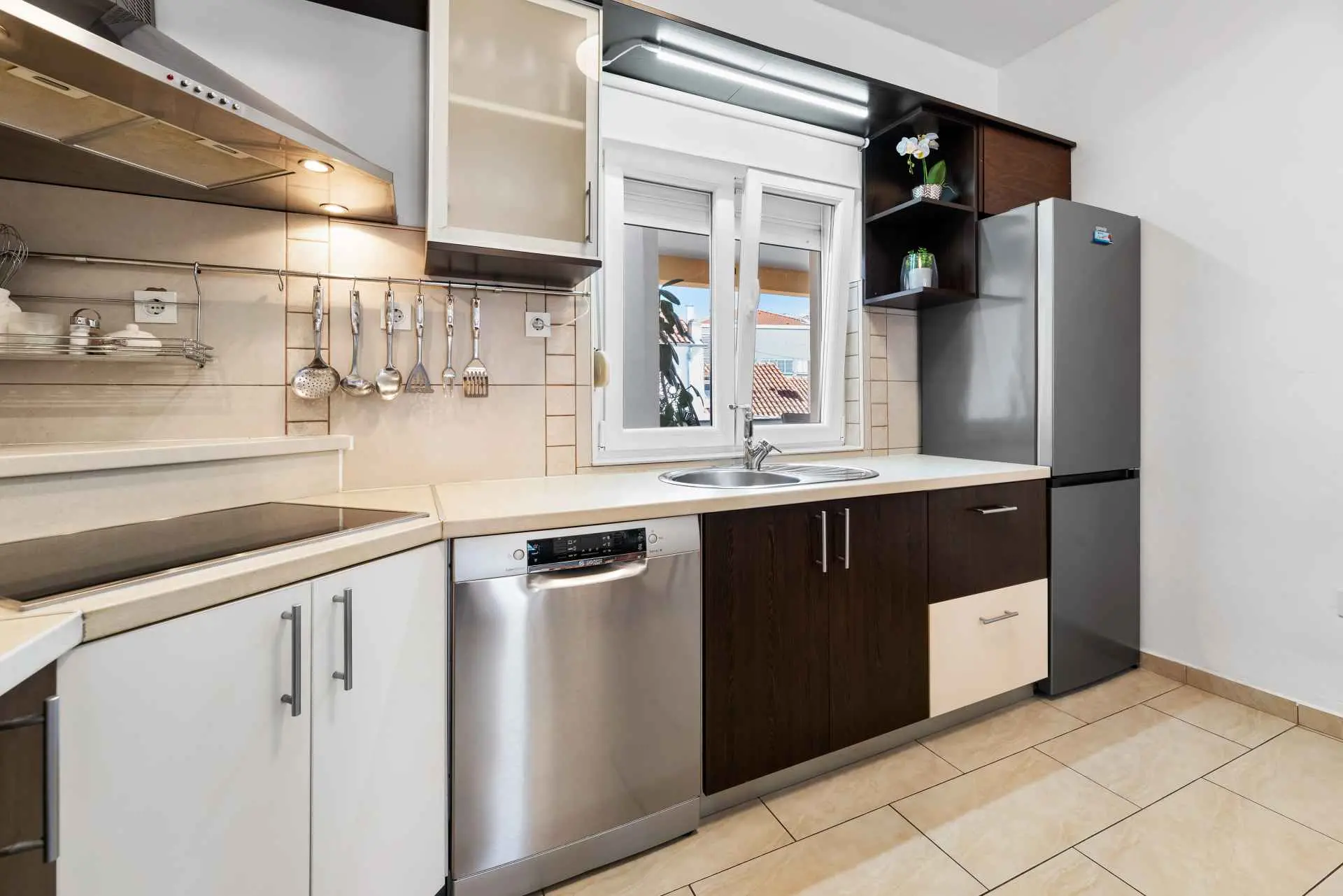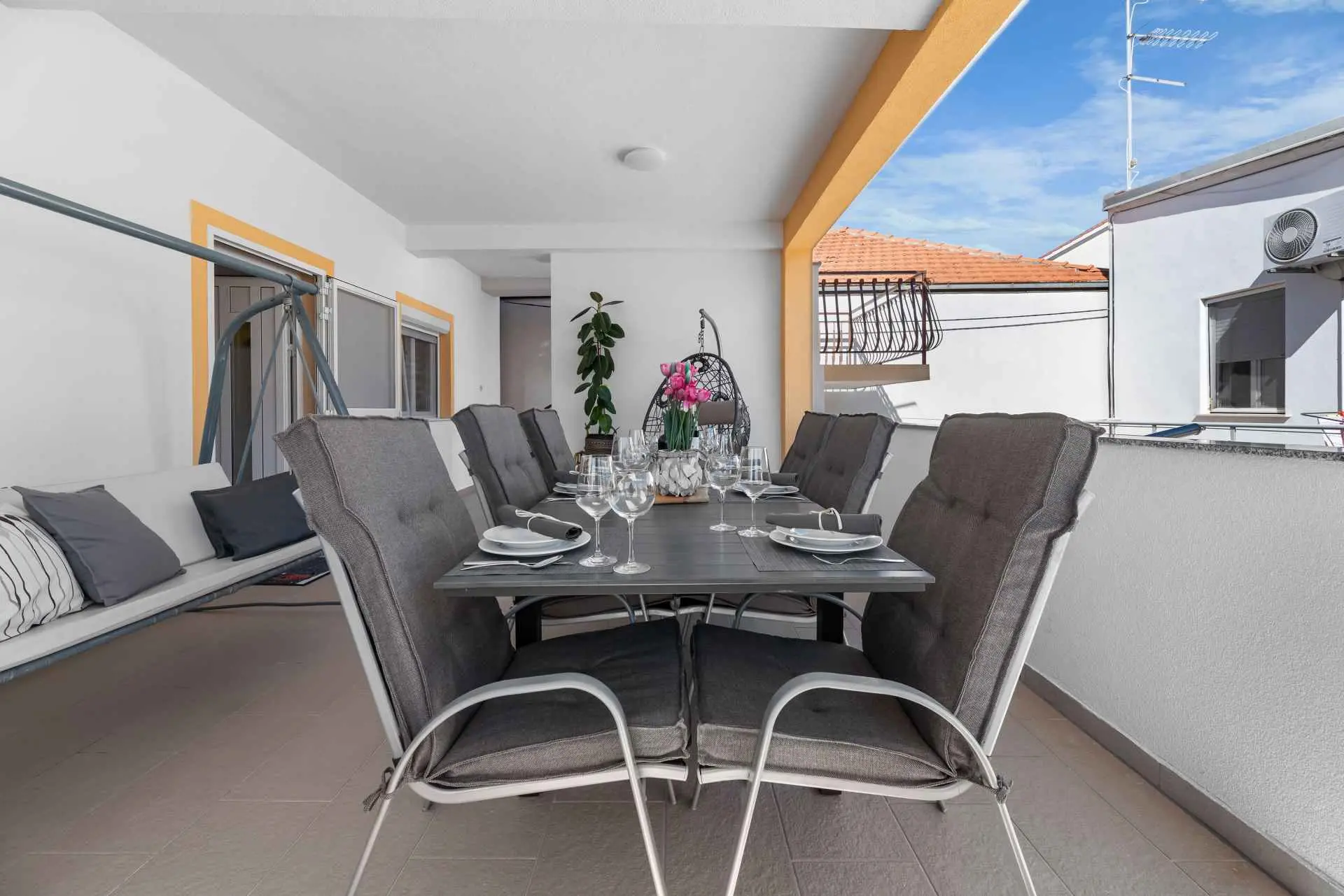 Appartement te huur in het centrum van Biograd na Moru. Wij houden ons al sinds 1950 bezig met toerisme. Het appartement is van alle gemakken voorzien: airconditioning, koelkast met vriesvak, oven, wasmachine, vaatwasser, max TV, Netflix, wifi, etc... In de directe omgeving op 100 meter ligt het strand van Dražica , dat ook het mooiste strand van Biograd is, en is bekroond met de blauwe vlag voor de mooiste stranden van de Adriatische Zee. Er zijn ook talloze winkels, cafés, restaurants, banken en al het andere om ons heen. Het appartement heeft 3 sterren en beveiligde parkeergelegenheid. Appartement ZARA is voor max. 2 personen. 8 personen en bevindt zich op de eerste verdieping van een gezinswoning. Het heeft twee slaapkamers en een grote woonkamer met een slaapbank. Aan de voorkant is een groot terras met een tafel en stoelen, en een mooie schommel om uit te rusten en te genieten van de zon. We hebben ook een kinderbedje indien nodig.