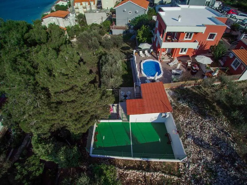 Villa Nostra biedt accommodatie voor 8 personen. De accommodatie bevindt zich op de eerste verdieping en bevat: vier slaapkamers met tweepersoonsbedden, twee keukens, twee badkamers, twee woonkamers. Vanaf het grote terras heeft u een prachtig uitzicht over de zee. Wij zijn gelegen in een rustige omgeving zodat u ongestoord van uw vakantie kunt genieten. We bieden een seizoensgebonden zwembad, een kinderspeelplaats, een minivoetbal- en basketbalbox en een fitnessruimte. Op het terras bij het zwembad kunt u genieten van een barbecue, we hebben ook een gesloten open haard met een keuken. Op het strand, dat op ongeveer honderd meter afstand ligt, bevindt zich onze familiestrandbar waar u kunt genieten van een gezellige sfeer. Wij bieden verhuurdiensten voor scooters, waterfietsen, boten en auto's. Tot ziens!!!