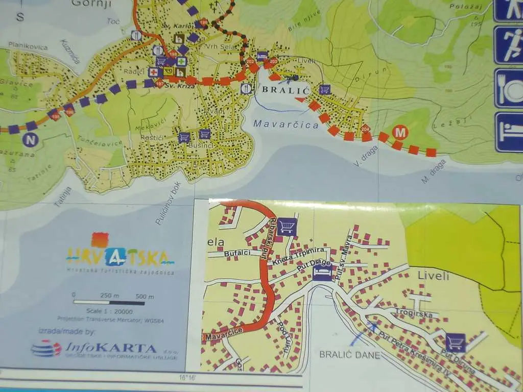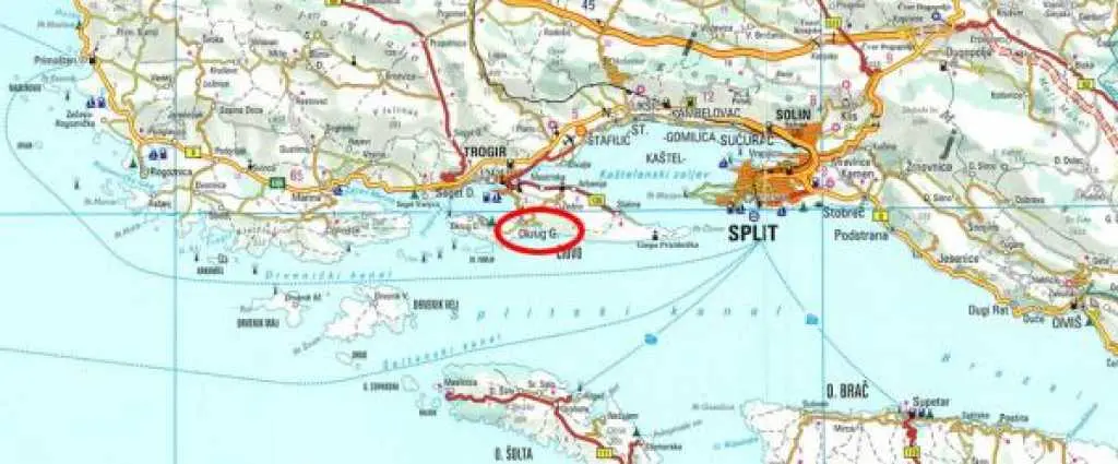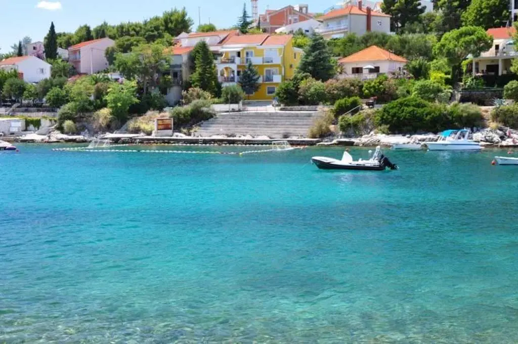 Het object is gelegen in een prachtige baai (MAVARSTĆICA) -OKRUG GORNJI, ČIOVO.ČIOVO is verbonden met een prachtige brug (TROGIR-ČIOVO) gebouwd in 2018. Wanneer de brug oversteekt, gaat er nog eens 3 km naar Okrug Gornji met een nieuwe weg en borden worden gecontroleerd en de inscriptie OKRUG GORNJI- (Mavarstica). De afstand van de UNESCO-stad Trogir bedraagt 5 km, vanaf de luchthaven -KAŠTELA-SPLIT, 9 km.