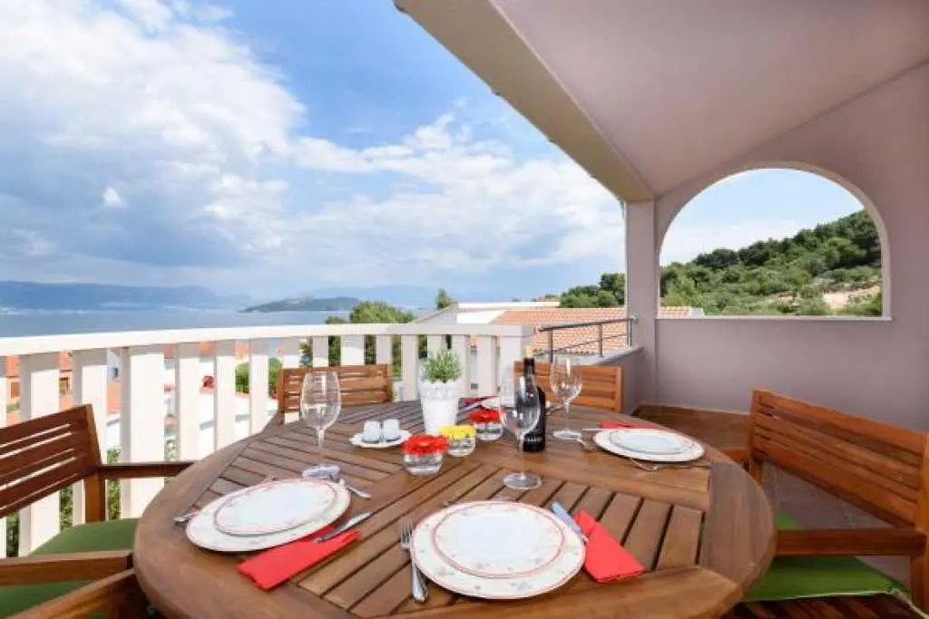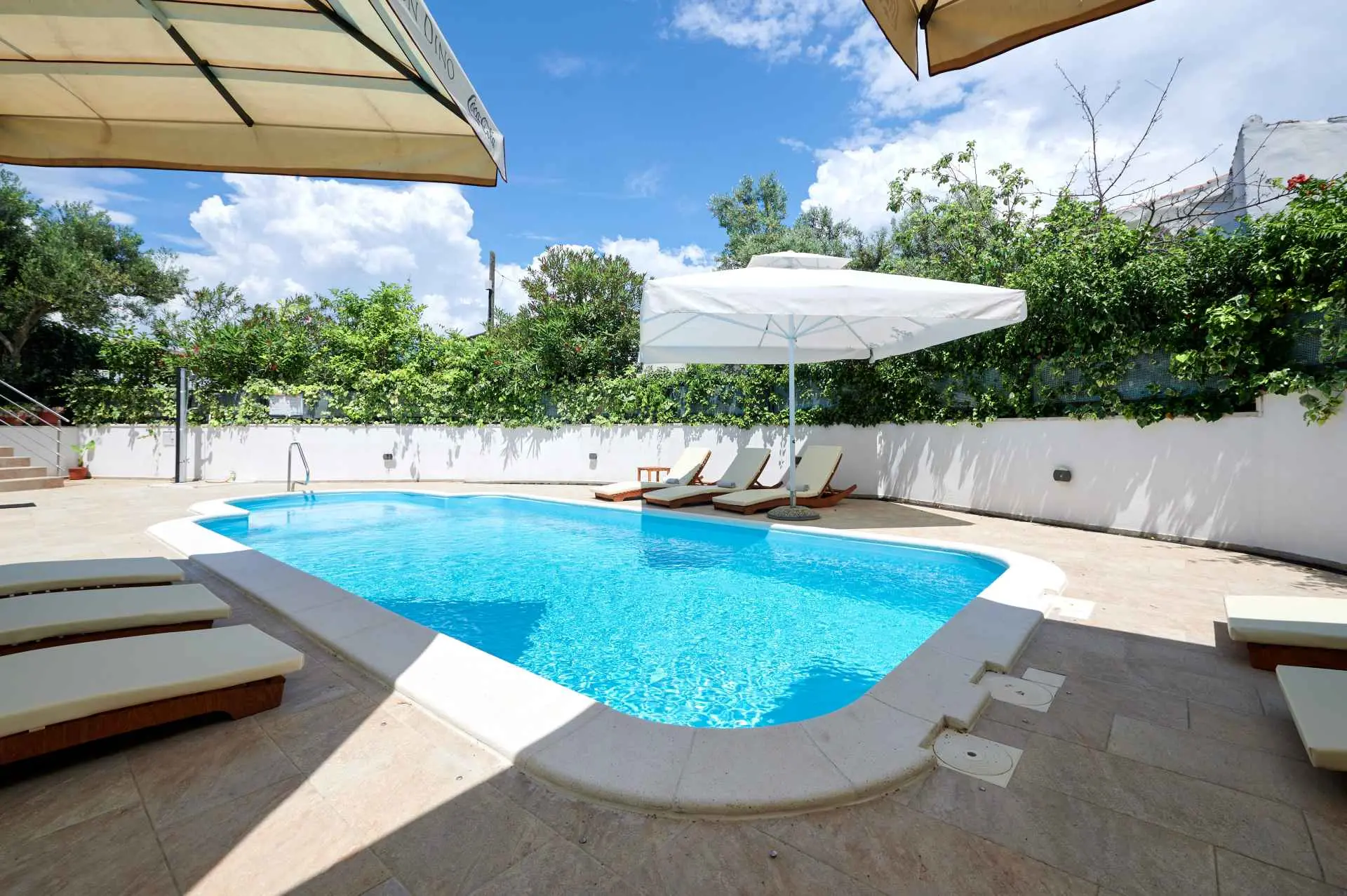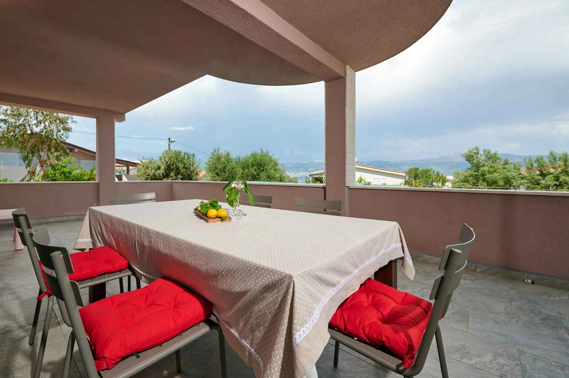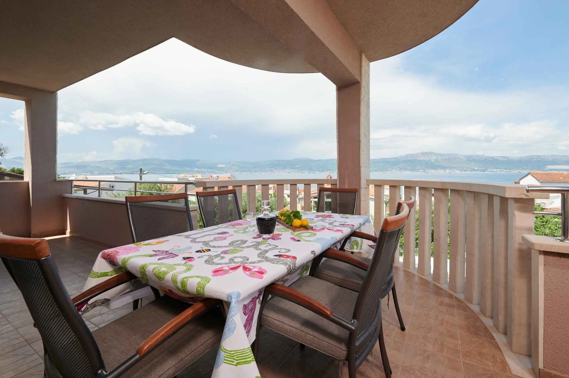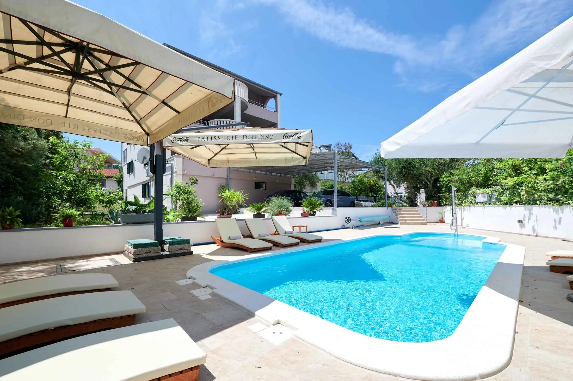 Villa Maris is gelegen in Slatina: 9 km van de stad Trogir, 1, 8 km van de mooiste stranden (onbewoond) van het eiland, wij bieden 3 appartementen, een groot zwembad (9, 80x3, 50), tuin, parkeerplaats Elk appartement is uitgerust met wi fi, een terras met uitzicht op de zee. De eerste is op een hoog niveau op de begane grond, 3 slaapkamers capaciteit van in totaal 8 bedden, 35 m2 terras, keuken met alle benodigdheden, badkamer. Andere ap is op de eerste verdieping 3 slaapkamers 6 2 zetels totaal, keuken, woonkamer, badkamer en 25 m2 terras is de derde op de tweede verdieping. , Geschikt voor 6 personen, woonkamer, keuken, badkamer, terras 20 m2. Alle drie ap zijn volledig uitgerust met: wasmachines (keuken / badkamer), WiFi-toegang, satelliet-tv, airconditioning, magnetron, alle keukengerei, parkeerplaats.