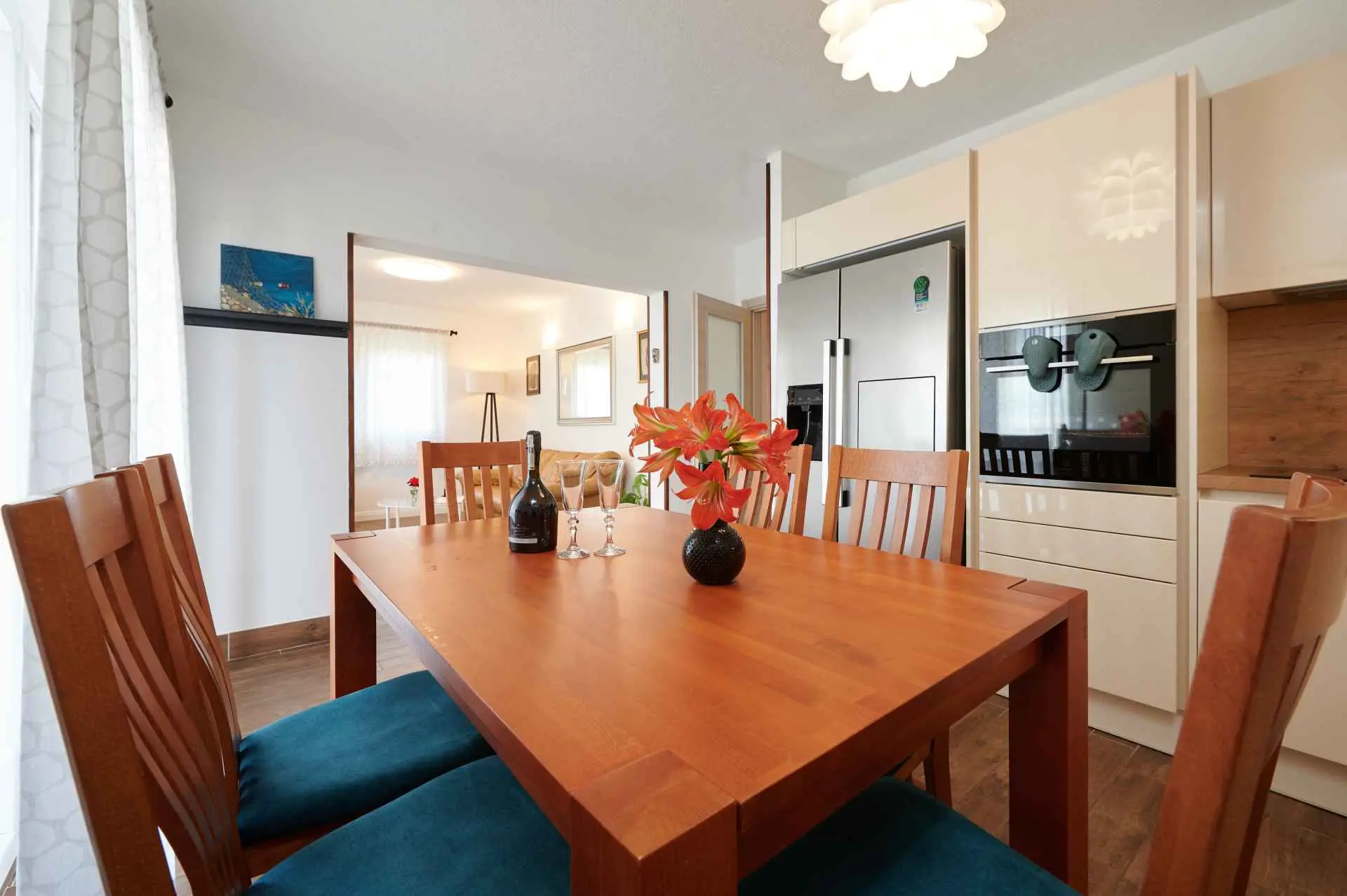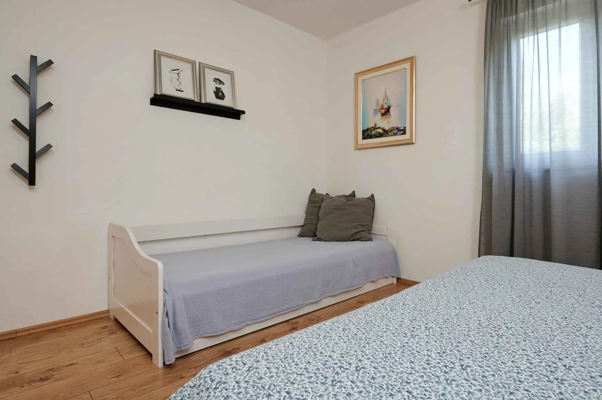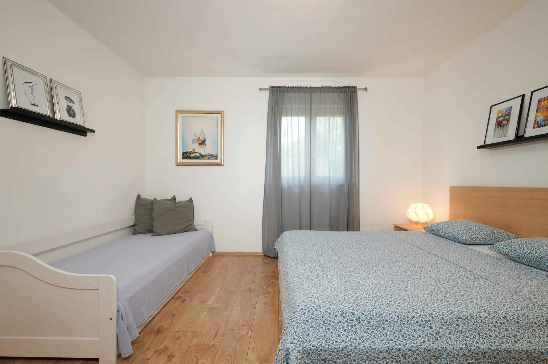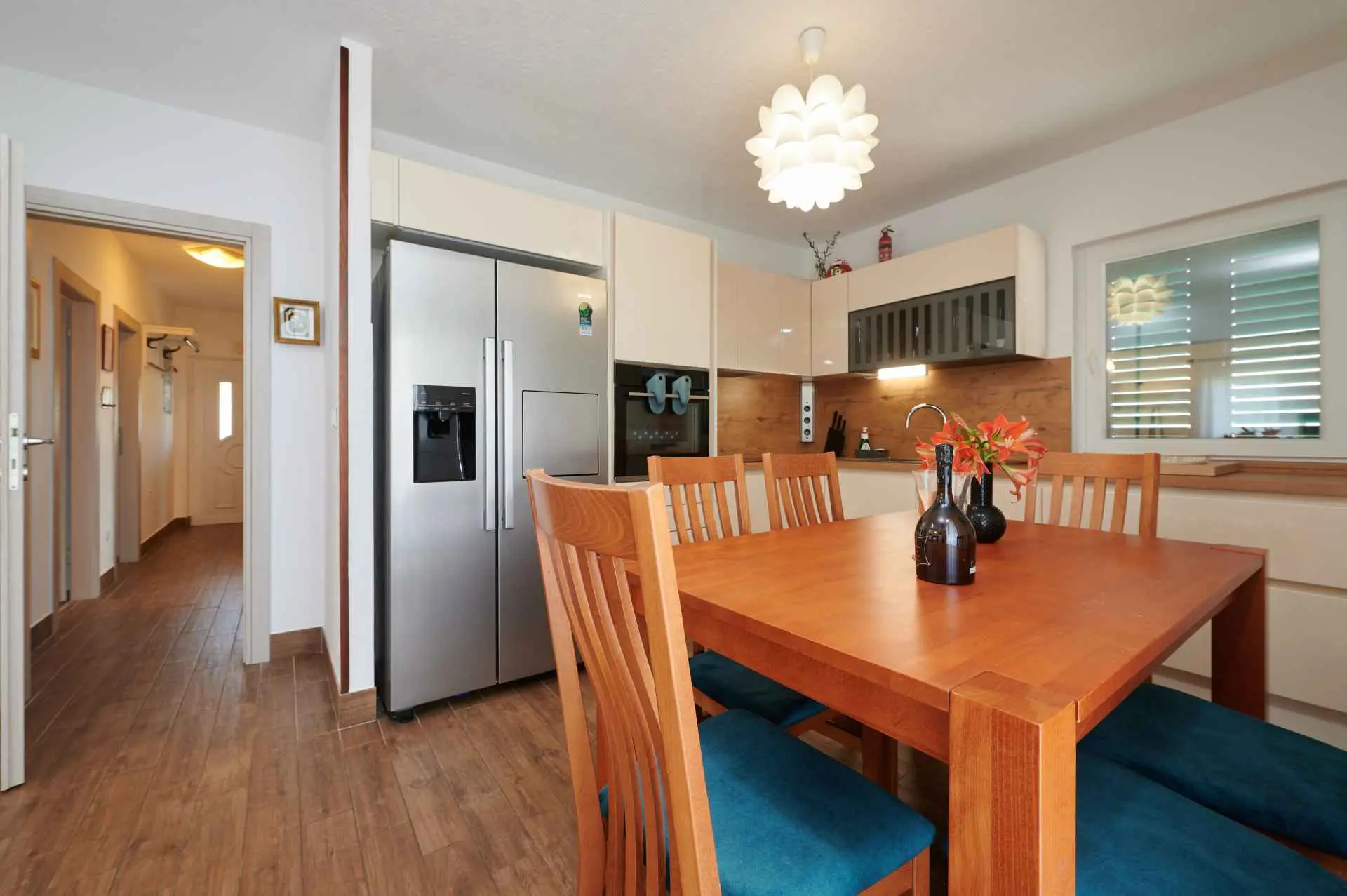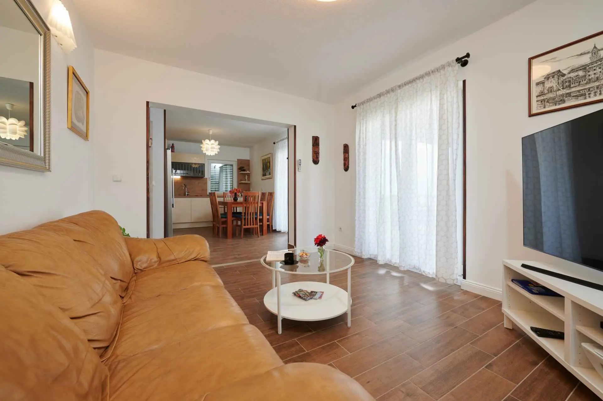 Villa Maris is gelegen in Slatina: 9 km van de stad Trogir, 1, 8 km van de mooiste stranden (onbewoond) van het eiland, wij bieden 3 appartementen, een groot zwembad (9, 80x3, 50), tuin, parkeerplaats Elk appartement is uitgerust met wi fi, een terras met uitzicht op de zee. De eerste is op een hoog niveau op de begane grond, 3 slaapkamers capaciteit van in totaal 8 bedden, 35 m2 terras, keuken met alle benodigdheden, badkamer. Andere ap is op de eerste verdieping 3 slaapkamers 6 2 zetels totaal, keuken, woonkamer, badkamer en 25 m2 terras is de derde op de tweede verdieping. , Geschikt voor 6 personen, woonkamer, keuken, badkamer, terras 20 m2. Alle drie ap zijn volledig uitgerust met: wasmachines (keuken / badkamer), WiFi-toegang, satelliet-tv, airconditioning, magnetron, alle keukengerei, parkeerplaats.