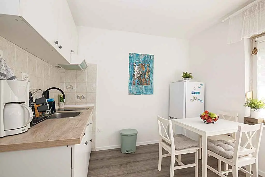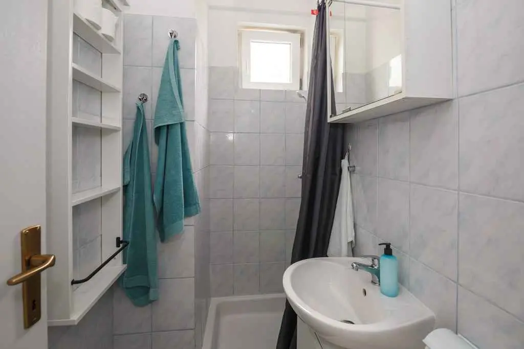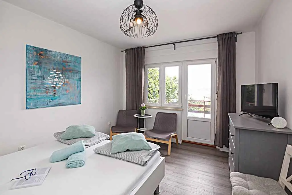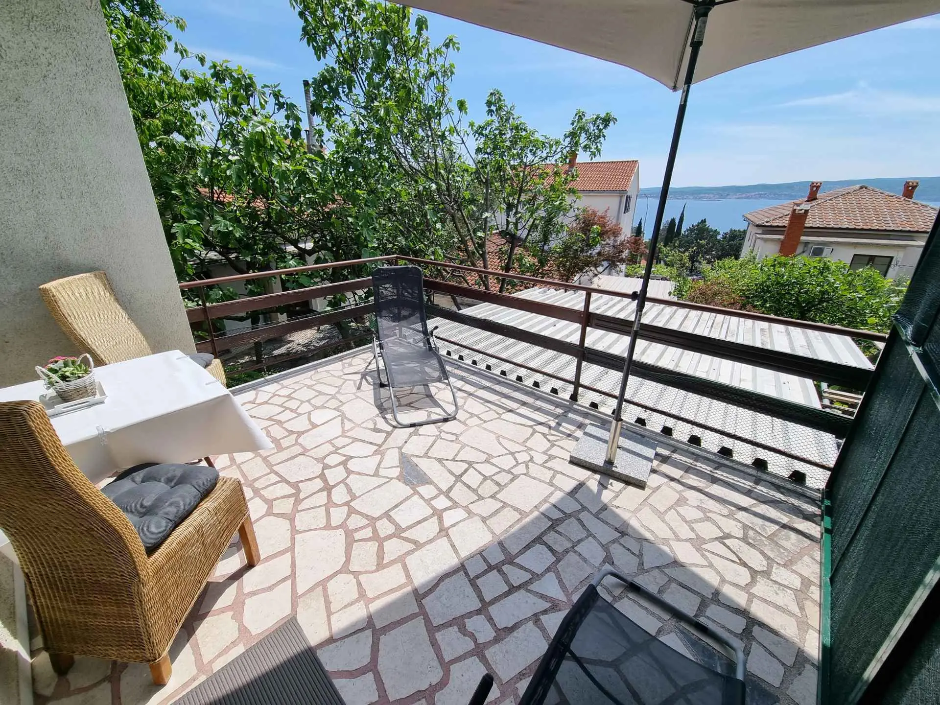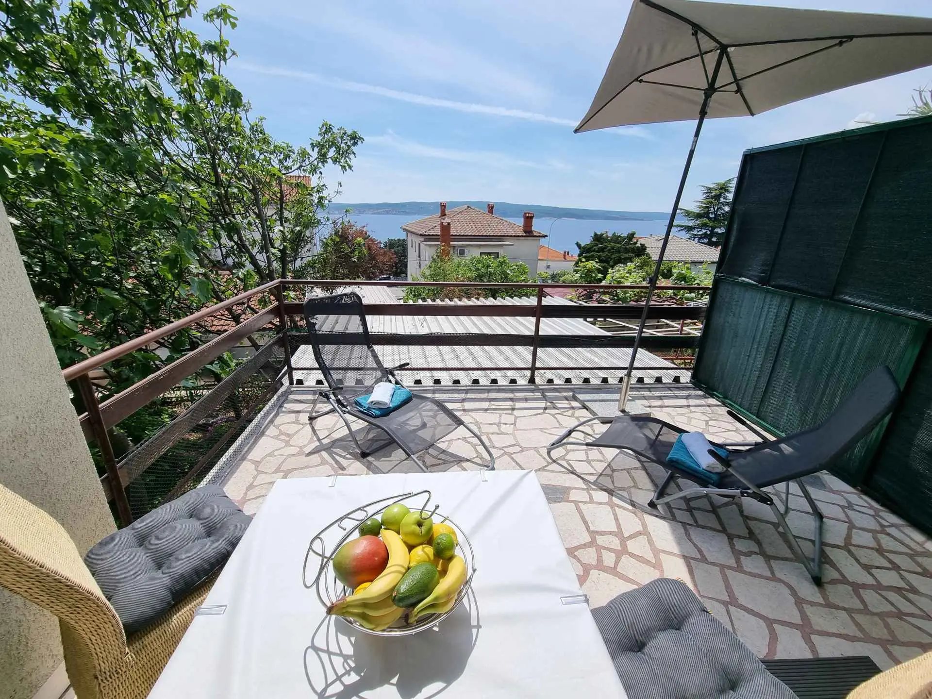 Appartement voor 2 personen met een groot terras met uitzicht op zee, op 5-7 minuten loopafstand van het strand, restaurants, bars en winkels. Gratis WiFi, airconditioning en satelliet-tv beschikbaar. Ons appartement heeft een volledig uitgeruste keuken met koffiezetapparaat, magnetron, waterkoker en theedoeken. Badkamer bevat toilet, wastafel en een douche, handdoeken en beddengoed zijn ook beschikbaar. Appartement heeft een eigen terras met zeezicht (ca. 12m2) en is half overdekt, voorzien van stoelen, tafel en een parasol. Parkeerplaats beschikbaar achter het huis. De luchthaven van Rijeka ligt op slechts 20 km afstand.