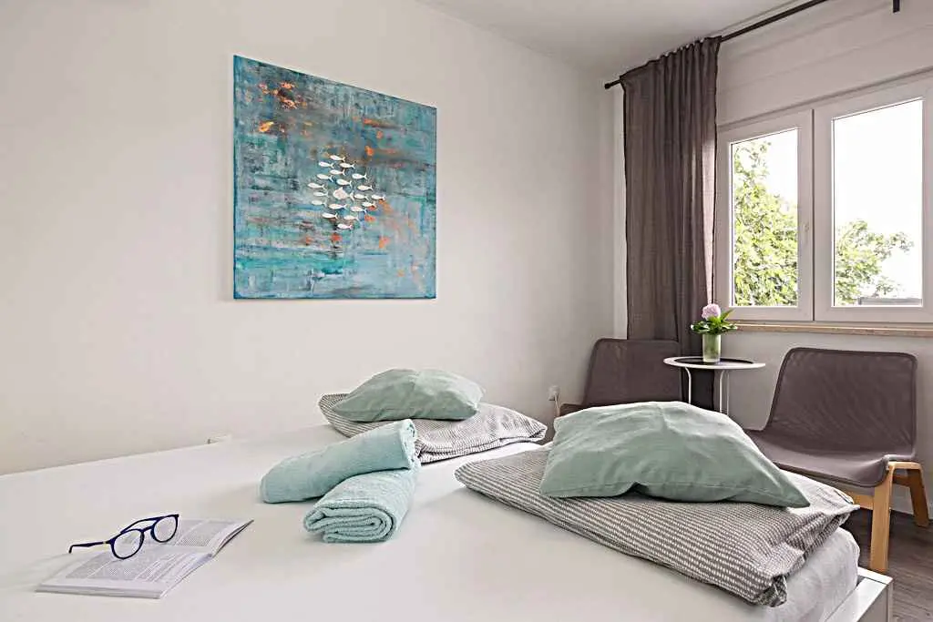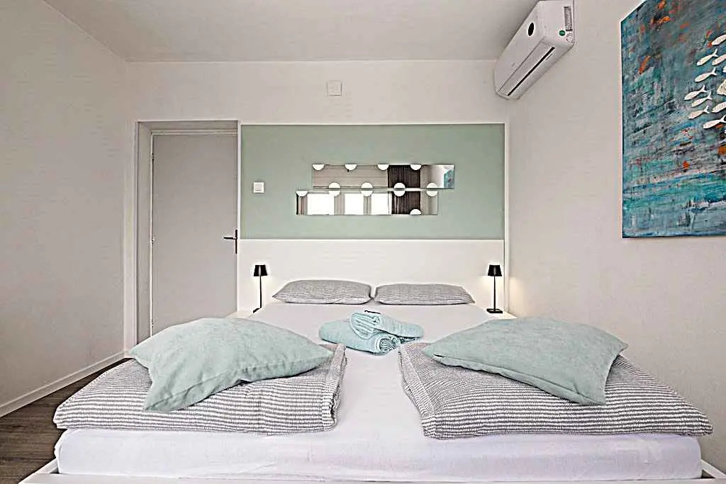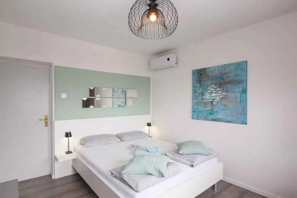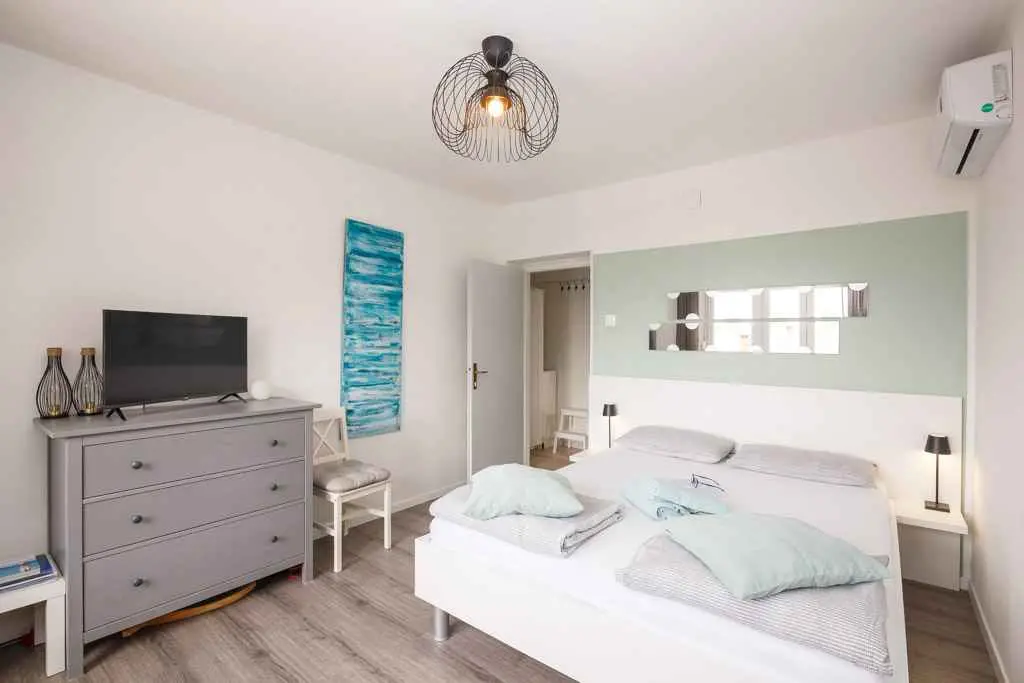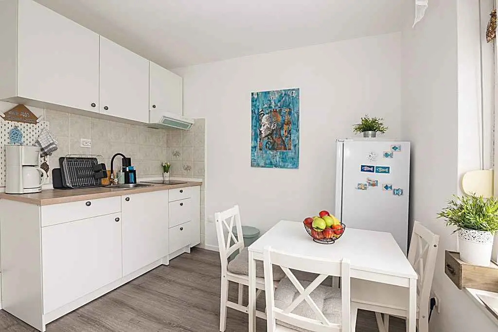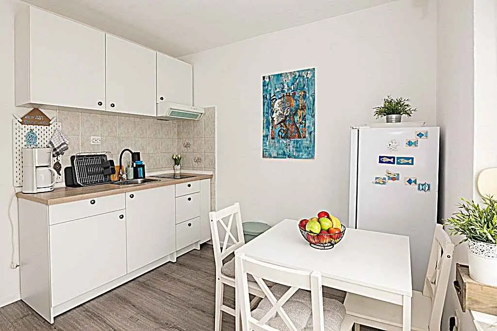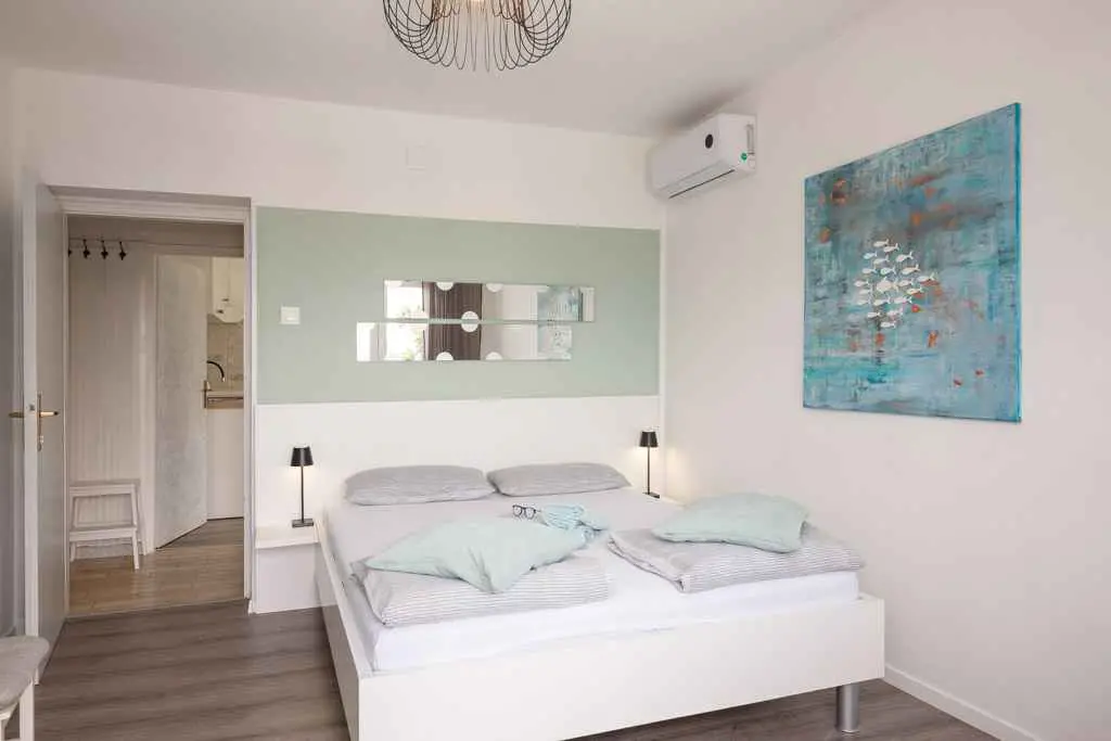 Appartement voor 2 personen met een groot terras met uitzicht op zee, op 5-7 minuten loopafstand van het strand, restaurants, bars en winkels. Gratis WiFi, airconditioning en satelliet-tv beschikbaar. Ons appartement heeft een volledig uitgeruste keuken met koffiezetapparaat, magnetron, waterkoker en theedoeken. Badkamer bevat toilet, wastafel en een douche, handdoeken en beddengoed zijn ook beschikbaar. Appartement heeft een eigen terras met zeezicht (ca. 12m2) en is half overdekt, voorzien van stoelen, tafel en een parasol. Parkeerplaats beschikbaar achter het huis. De luchthaven van Rijeka ligt op slechts 20 km afstand.