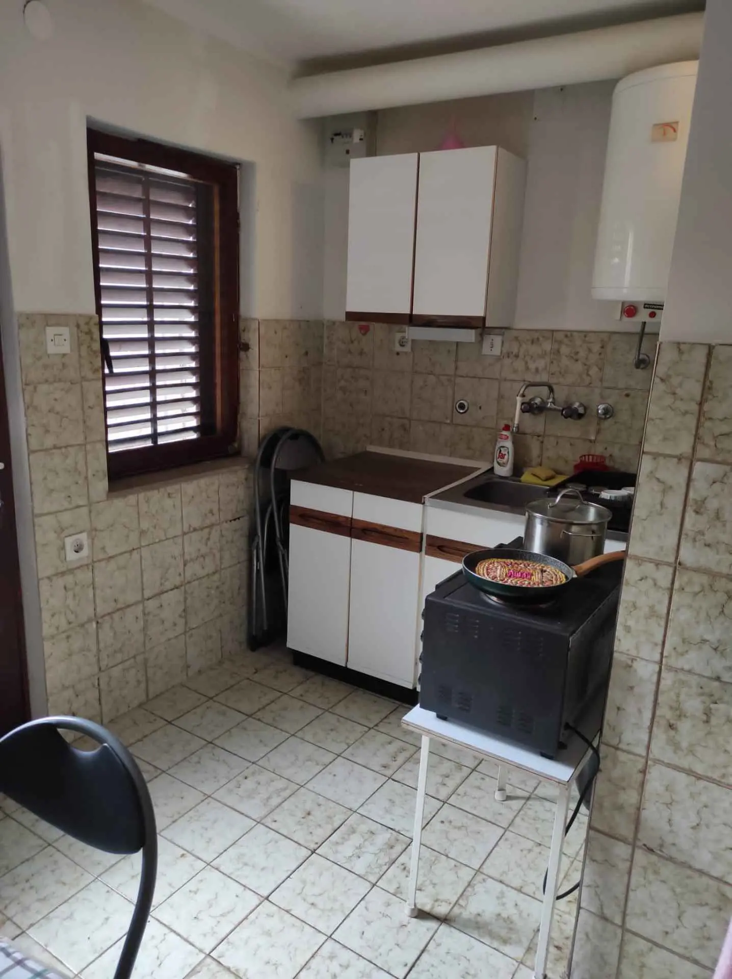 CRIKVENICA DRAMALJ Studioappartement van 21 m² / plus 15 m² (waarvan 6 m² overdekt) terras. Geschikt voor 2 volwassenen en een kind tot 6 jaar. Totaalprijs voor 7 nachten voor 2 personen, inclusief belastingen, van 175 tot 315 euro (25 tot 45 euro per nacht), afhankelijk van de periode in het seizoen. Toeristenbelasting is bij de prijs inbegrepen. Gebruik van airconditioning wordt extra in rekening gebracht, op basis van het werkelijke energieverbruik (controlemeter). 2 +1 bedden, tv, TWC badkamer. Ruim (15 m²) gedeeltelijk overdekt terras in natuurlijke schaduw; volledig uitgeruste keuken met een fornuis met een kleine oven, een grote koelkast met een vriezer van 30 liter. Eigen ingang en parkeergelegenheid. Op vijf minuten lopen van het lokale grindstrand en de supermarkt, 2 km van het belangrijkste zandstrand van Crikvenica. LET OP: Niet alle wandelpaden naar het strand zijn zichtbaar op sommige internetkaarten.