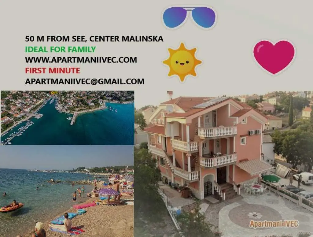 Al onze appartementen zijn gelegen in het centrum van Malinska (eiland Krk), 50 m van de zee, wat een unieke manier is om de stad te voelen op de plek die zoveel mogelijkheden biedt voor een aangename vakantie. Al onze appartementen zijn volledig ingericht en voorzien van: Aparte ingang Behorend terras TV Wifi Satelliet tv-ontvanger Airco Verzekerde parkeerplaats