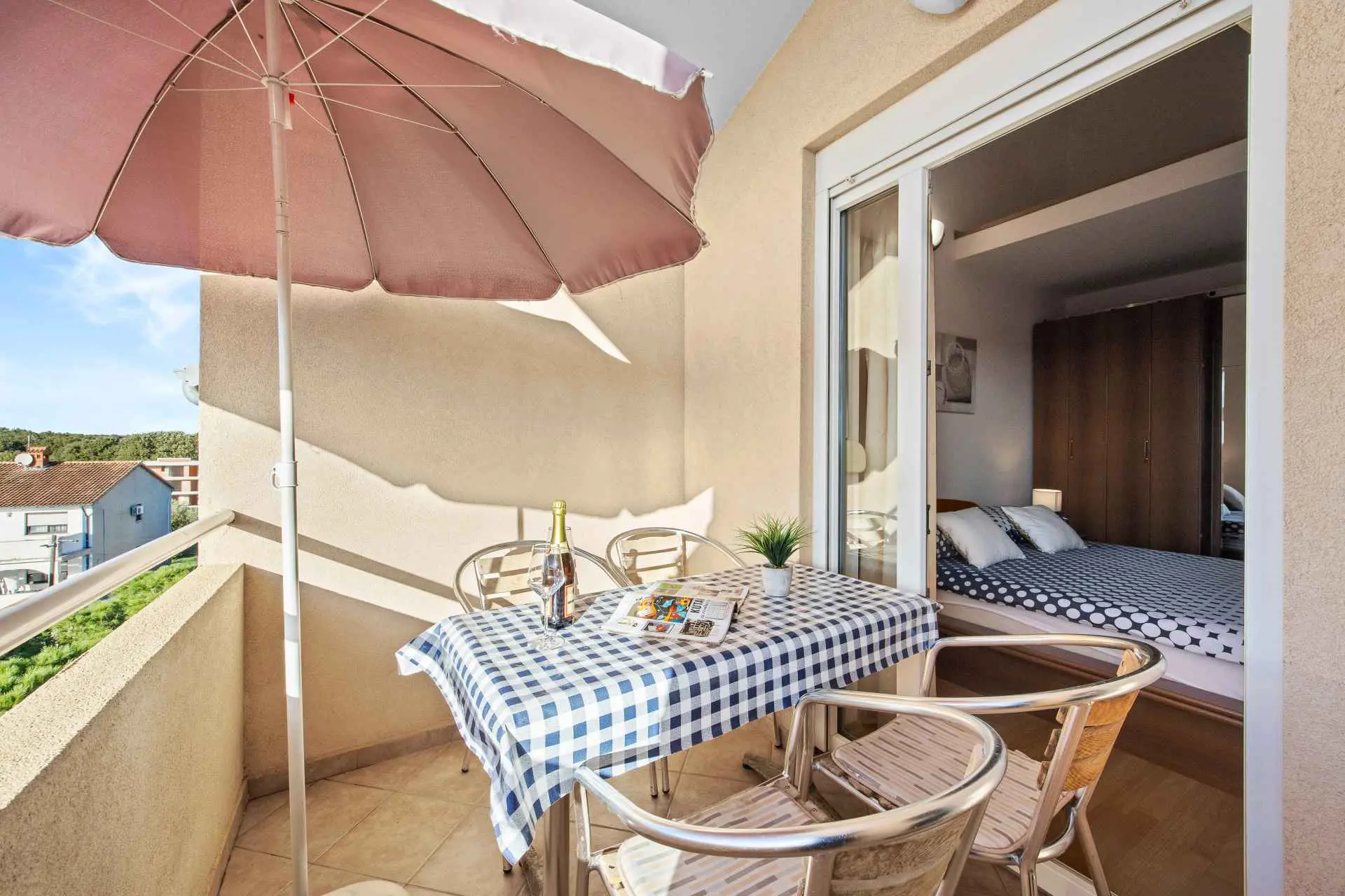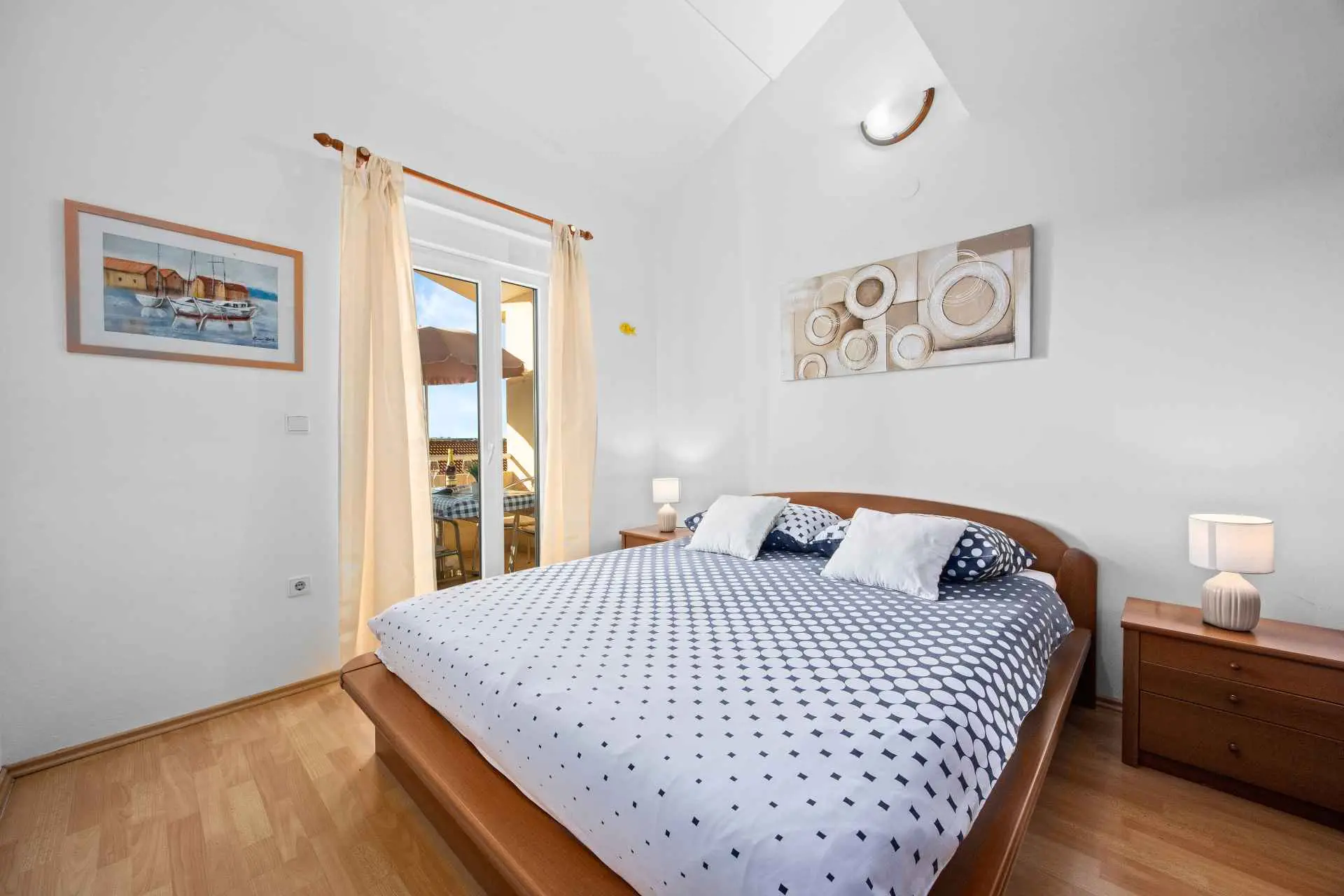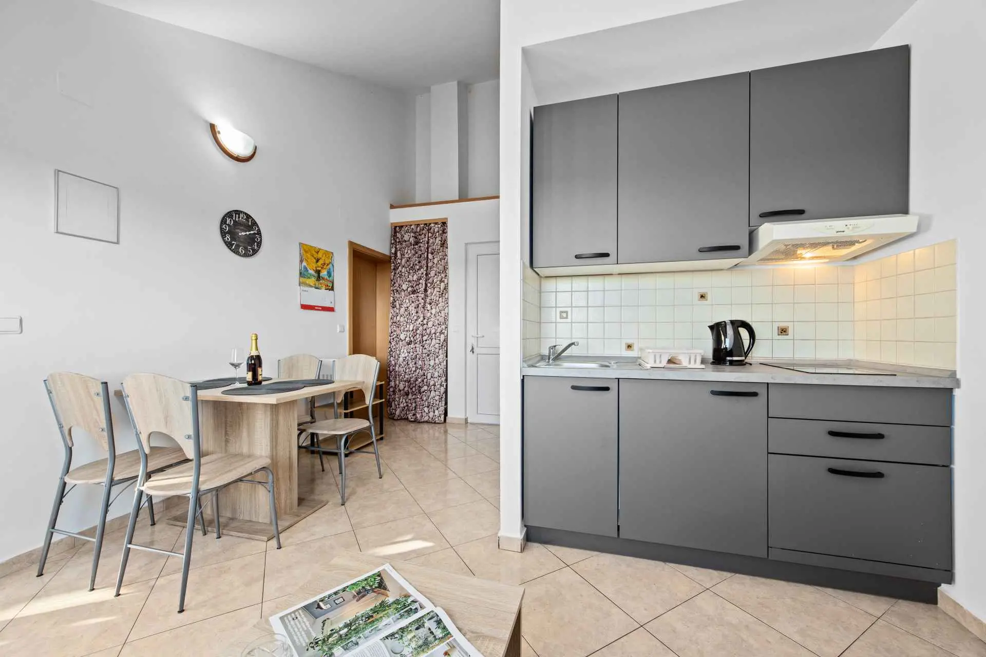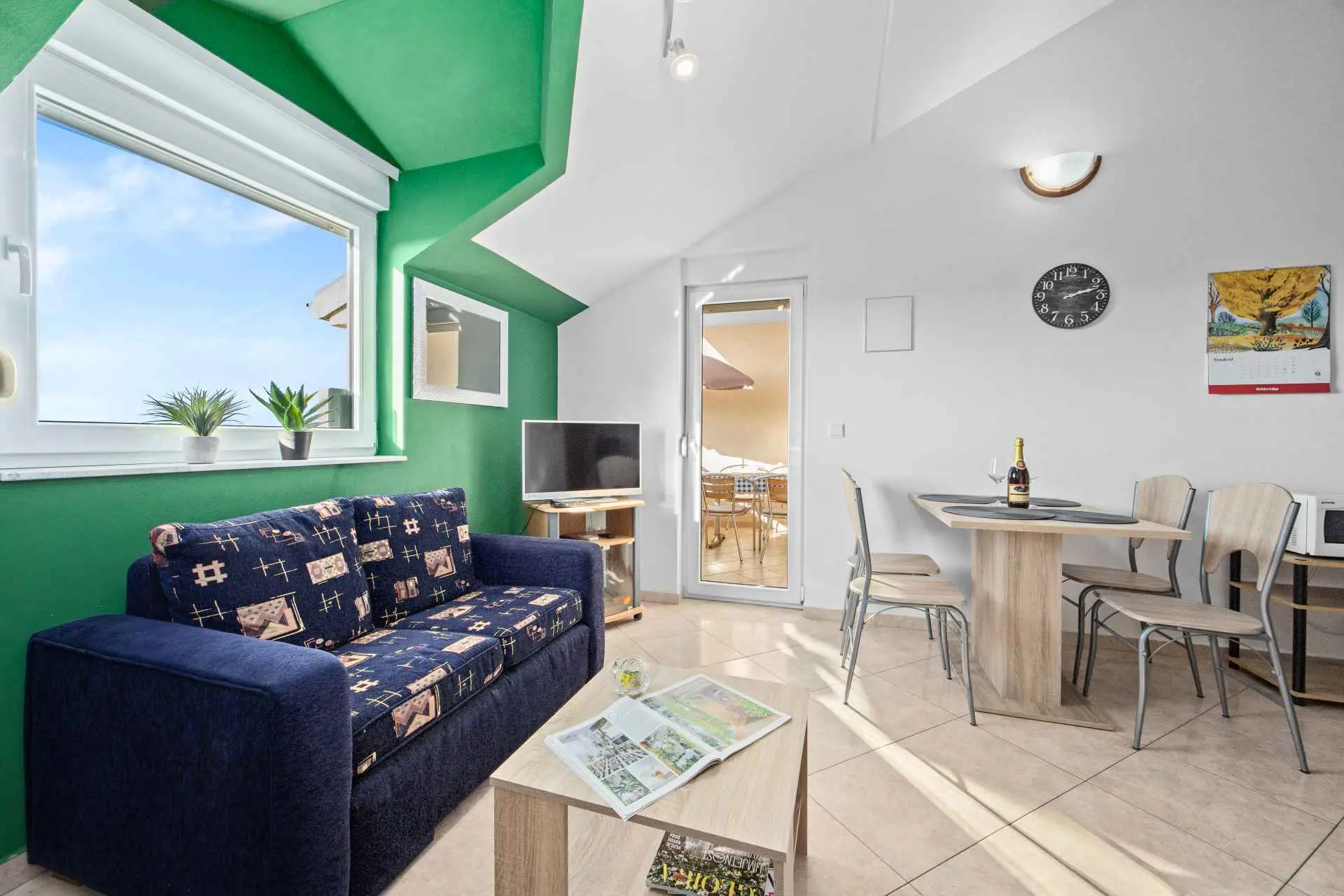 Medulin, eenkamer nieuw appartement van 35 m2 op de derde verdieping (2 + 2). Het appartement heeft een aparte slaapkamer, badkamer, hal, woonkamer met keuken en een mooie loggia. Het appartement is luchtig en heeft een zeezicht. Het is 700 m van de zee. Er zijn een paar discotheken en cafés voor jongeren in de buurt, evenals een funfair en een familiepark, en voor de ouderen is er live muziek op zomerse terrassen. Winkels, restaurants, postkantoor, bank, apotheek, benzinestation en alle andere inhoud vindt u in de nabijheid van het appartement. Medulin is een bekende toeristische stad, 10 km ten zuidoosten van Pula, in het noordoosten van de Medulin baai. Zuidoost van de nederzetting is het schiereiland Kašteja met zandstranden en dennenbossen. Op het schiereiland is een groot kamp te vinden. Op de kaap Kašteja zijn er resten van een prehistorische fort nederzetting, en op het schiereiland Vižula was er een nederzetting in de periode van het oude Neolithicum. Overblijfselen van Romeinse villa's (Villae Rusticae) zijn ontdekt aan de kust. Op de berg Vrcevan (71 m) zijn resten van het prehistorische leven gevonden. De kerk van St. Agnes in Medulin is erg interessant, het heeft twee identieke torens (klaar in 1912). Toerisme heeft sterk invloed op de ontwikkeling van Medulin.