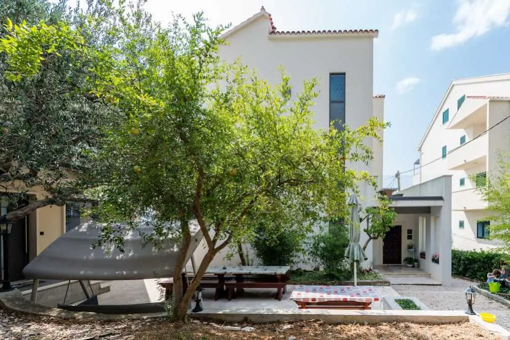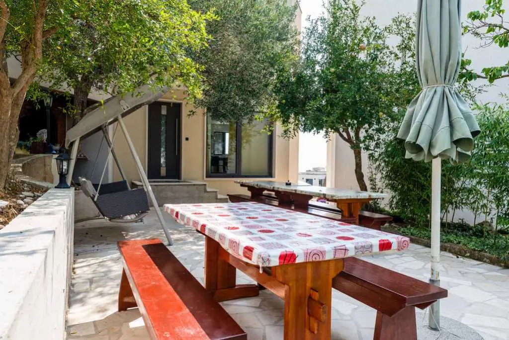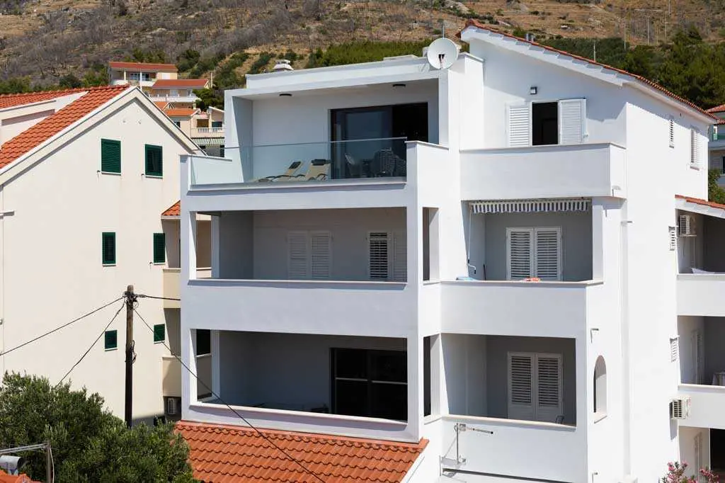 Het huis heeft 5 appartementen te huur. We hebben 4 studio-appartementen voor twee personen en een appartement voor 4 personen. Grote parkeerplaats bevindt zich direct naast het huis. Het prachtige strand bevindt zich net onder het huis en ligt op slechts 50 meter afstand. Er zijn twee cafés op het strand. Alle appartementen hebben een keuken, een badkamer, een groot balkon met uitzicht op de zee, WiFi, airconditioning en een flatscreen-tv. Achter het huis is er een grote zithoek met barbecue.