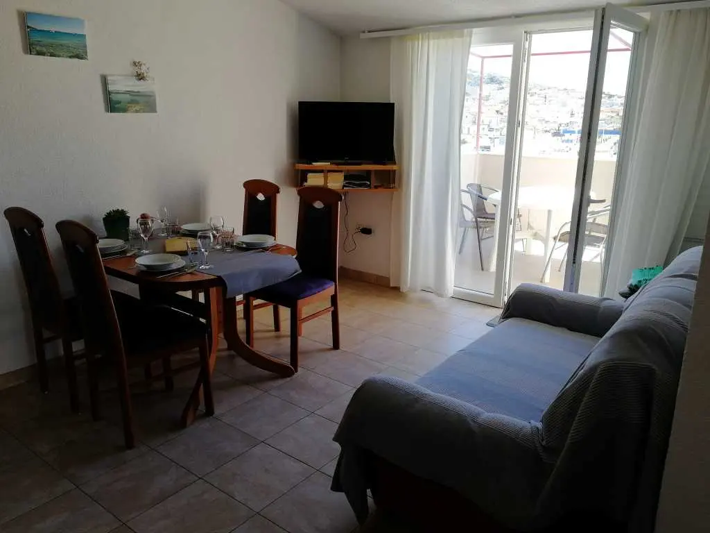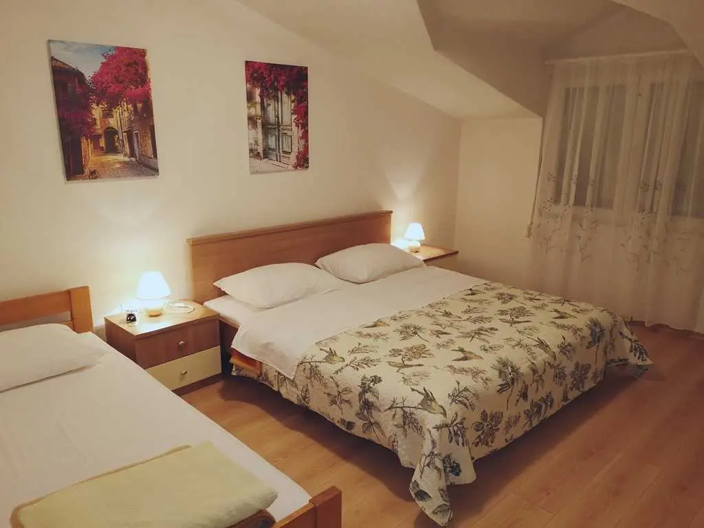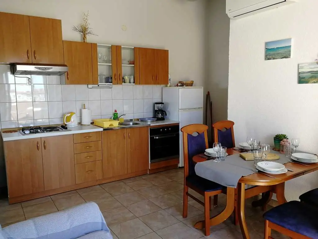 Appartementen Juraga bevinden zich in de breder cirkel van het centrum van Murter, vlakbij de jachthaven Hramina. In de buurt zijn supermarkt Tommy, restaurants Rebac, Racic en Boba, kiezelstrand / betonnen strand Zdrace. Afstand van het centrum is 200 m. APPARTEMENT 4 + 1 - zuidkant van het huis De grootte van het appartement is 60 m2 + balkon. Het heeft 2 slaapkamers, woonkamer en keuken, badkamer en balkon met uitzicht op de plaats Murter. Woonkamer en keuken zijn in dezelfde kamer. AIR CONDITION bevindt zich in de woonkamer en TV / SAT. Wij bieden u een gratis WIFI. Een slaapkamer heeft een tweepersoonsbed en de andere slaapkamer heeft een tweepersoonsbed en een eenpersoonsbed.