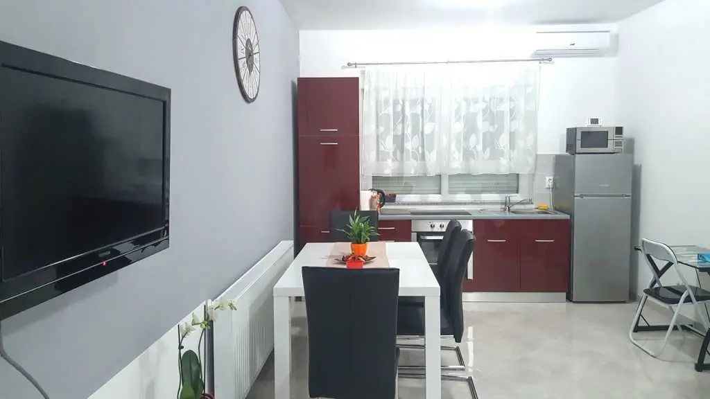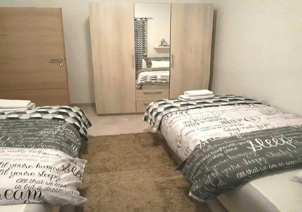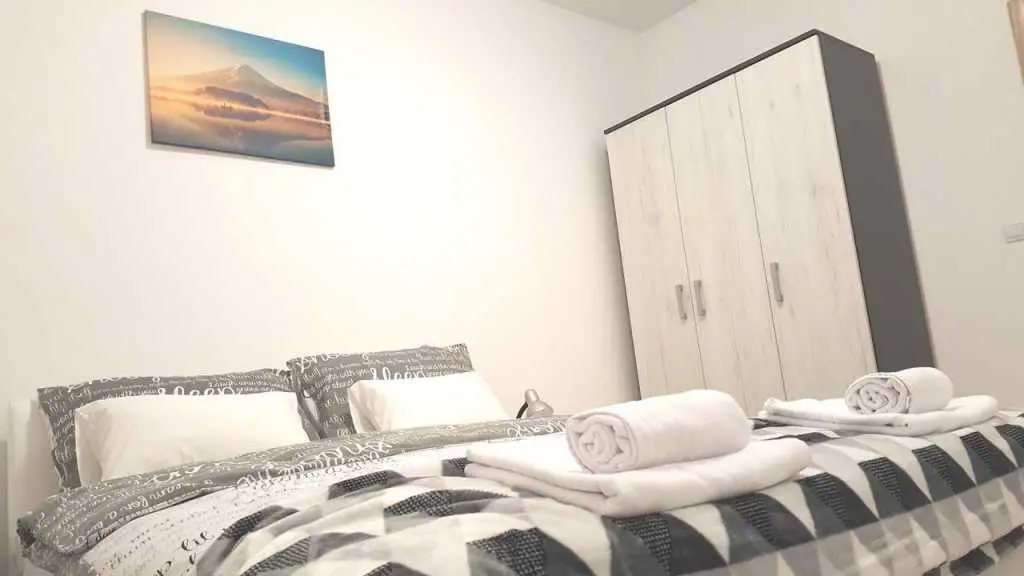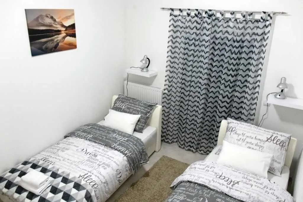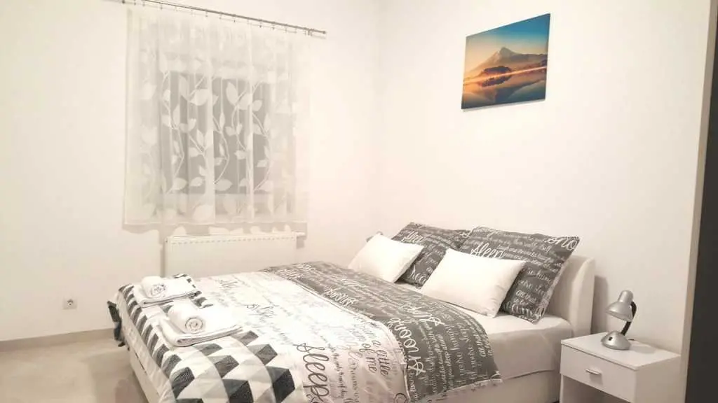 Het onlangs gerenoveerde Pampas-appartement ligt in het westelijke deel van Osijek in Retfala. Het is 55m2 groot, modern ingericht en bestaat uit twee slaapkamers, keuken met eetkamer en woonkamer, badkamer en groot terras (20 m2). Een slaapkamer heeft een bed van 160 x 200 cm voor twee personen en de andere heeft 2 eenpersoonsbedden van 90 x 200 cm en een slaapbank in de woonkamer zodat we plaats bieden aan maximaal 5 volwassenen. Het bevindt zich op de begane grond van een appartementengebouw, zonder trappen, en bevat alles wat u nodig heeft voor een comfortabel verblijf: gratis WiFi, lcd-tv, airconditioning, centrale verwarming, strijkijzer en strijkplank. Een babybedje tot twee jaar oud is op aanvraag beschikbaar - GRATIS! Het heeft ook een gratis parkeerplaats recht tegenover het appartement. In de directe omgeving (tot 200 m) zijn er veel nuttige voorzieningen: een markt, winkels, een slagerij, een ambulance, een apotheek, banken, cafés en meer. Het is bedoeld voor gasten die geen dure en te dure hotelaccommodatie willen, maar rust, comfort en ontspanning thuis. Het duurt 5 minuten om het stadscentrum te bereiken. Een zeer handige taxi is ook beschikbaar.