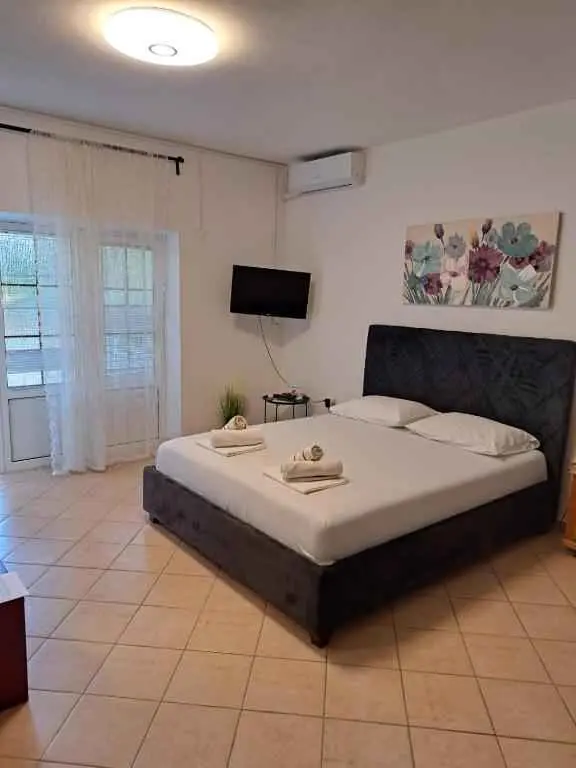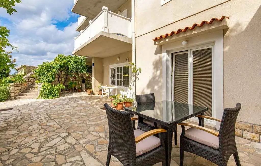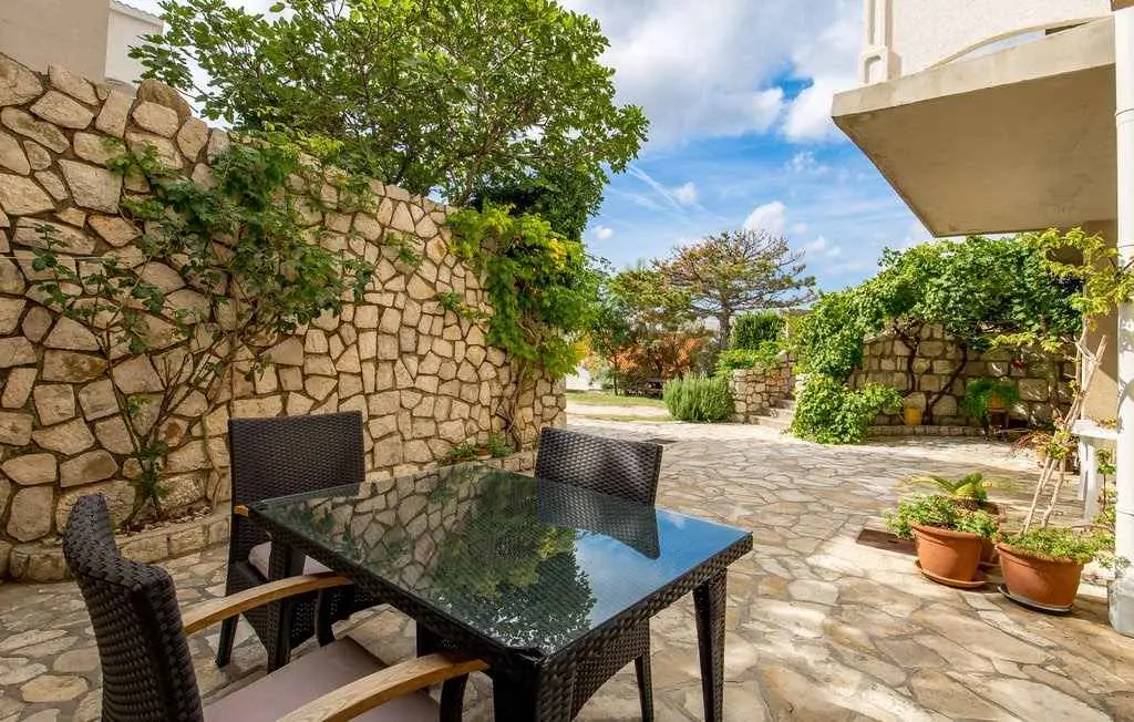 Een mooi uitzicht vanaf de tuin van het huis, omgeven door een stenen tuin, nodigt u uit om deze appartementen te kiezen als accommodatie voor uw vakantie. De eenvoudig ingerichte appartementen liggen vlakbij de kiezelbaai. Er is een buitengrill beschikbaar voor het bereiden van heerlijke specialiteiten. Het appartement heeft twee slaapkamers, een keuken en badkamer, en een groot terras. Het is voorzien van airconditioning, satelliet-tv en draadloos internet. De tuin heeft een eigen parkeerplaats voor auto's.