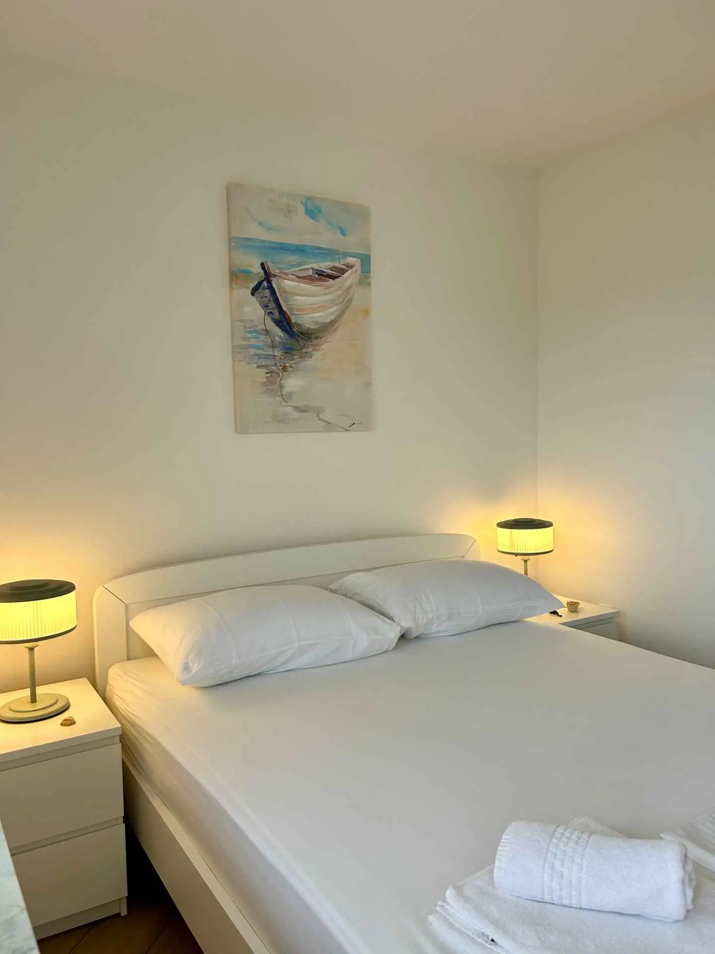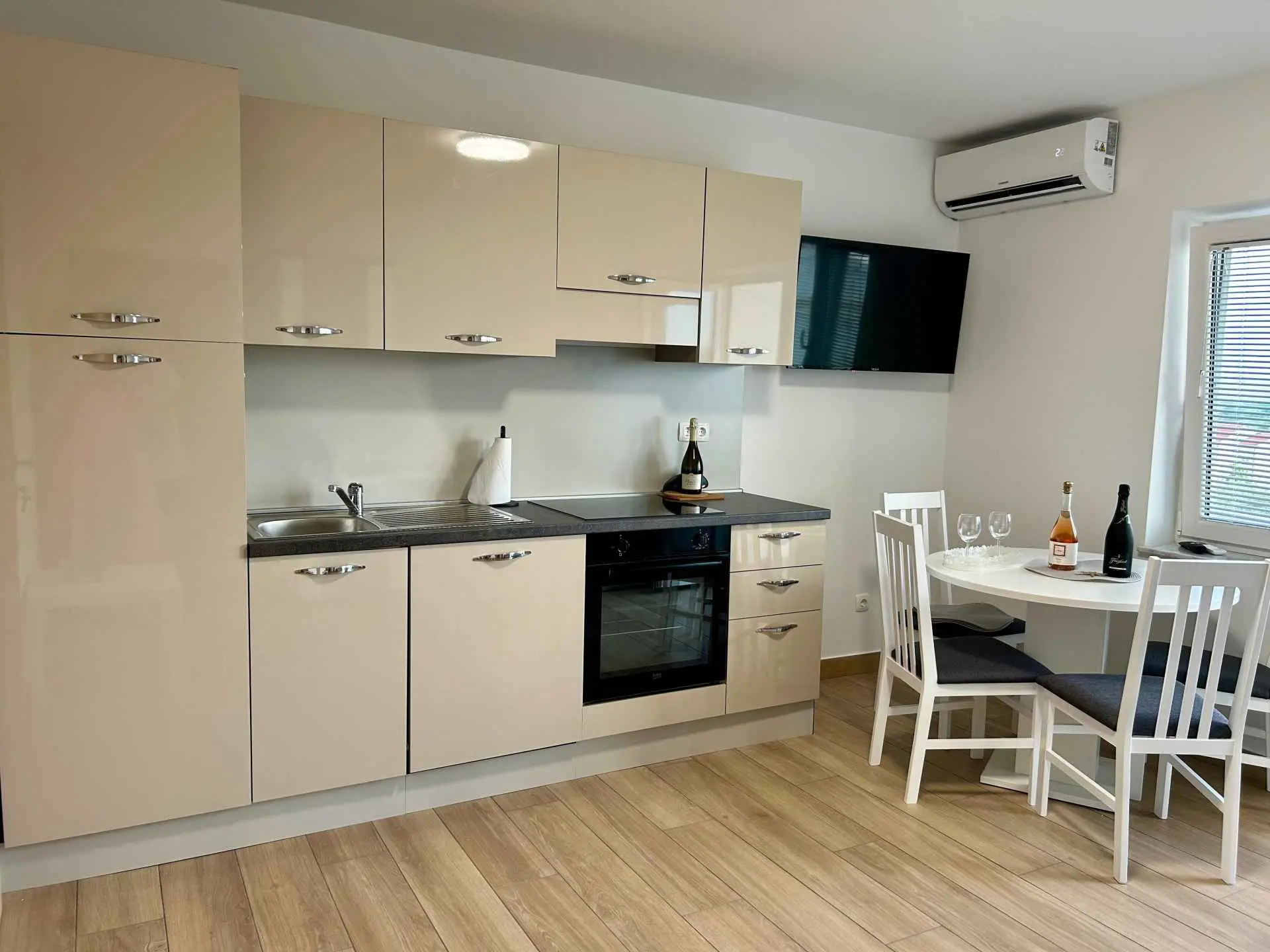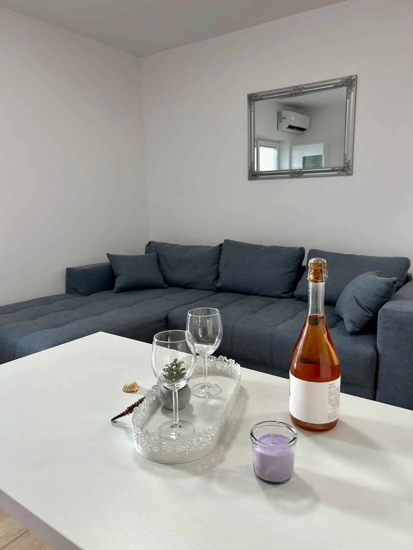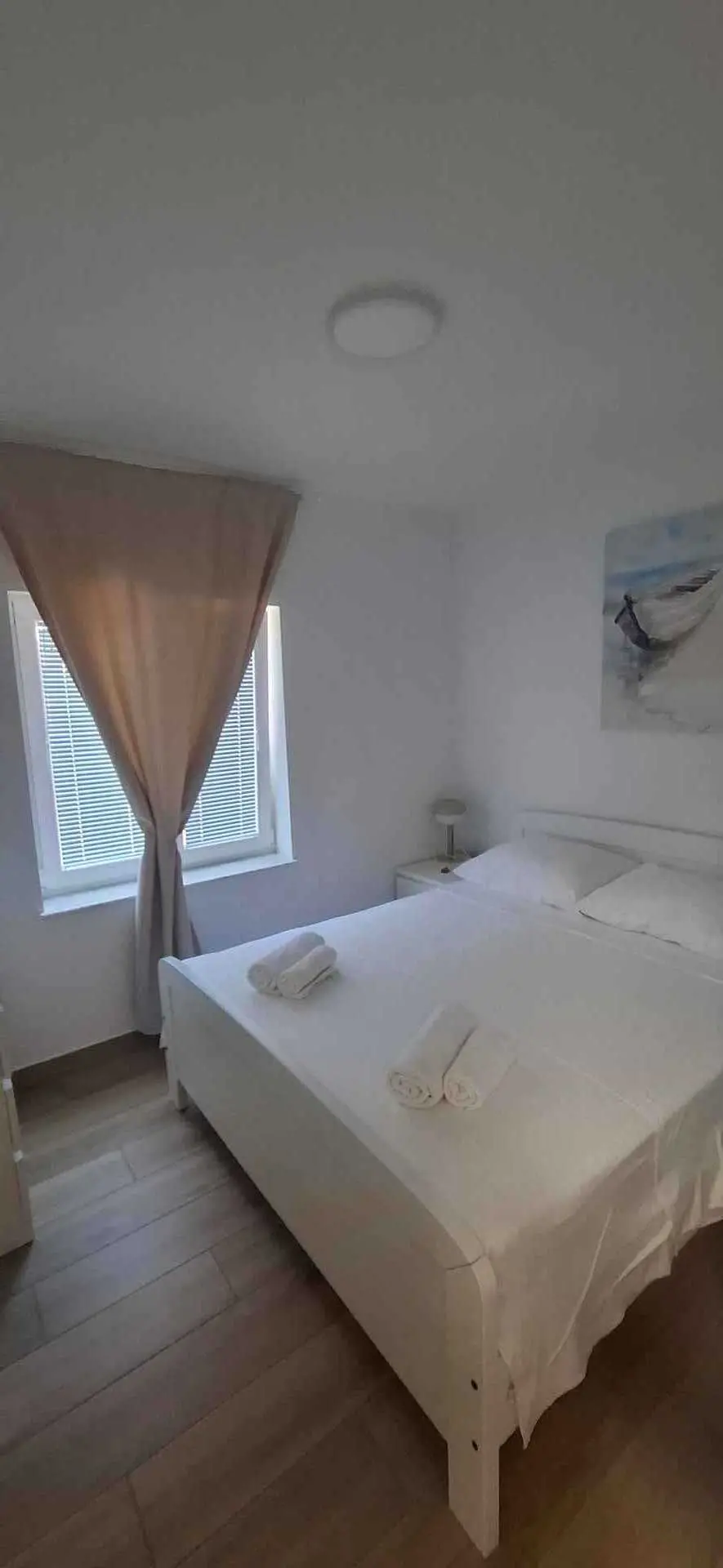 Nieuw ingericht en modern uitgerust appartement met airconditioning en een terras met prachtig uitzicht op de zee. De faciliteit is gelegen in een rustige buurt van Povljana, op 5 minuten lopen naar het centrum en vijf minuten naar het dichtstbijzijnde strand, Vrulja. In de buurt van de accommodatie ligt het zandstrand Perilo, op 10 minuten lopen, en de stranden Veliki en Mali Dubrovnik, op 10 tot 15 minuten lopen. De woning heeft twee aparte slaapkamers, een nieuw uitgeruste keuken met een vaatwasser en een oven, een flatscreen-tv, een zithoek met 2 extra bedden en een badkamer met een inloopdouche. Gasten zijn voorzien van handdoeken en beddengoed, privéparkeergelegenheid en gratis WiFi. In de omgeving zijn er winkels, restaurants, pizzeria's, cafés en een postkantoor. De afstand tot Pag bedraagt 13 km. De luchthaven van Zadar ligt op 58 km van de accommodatie.