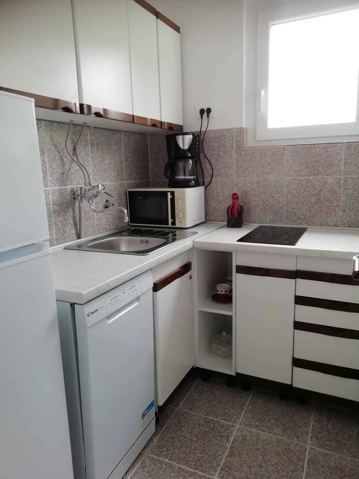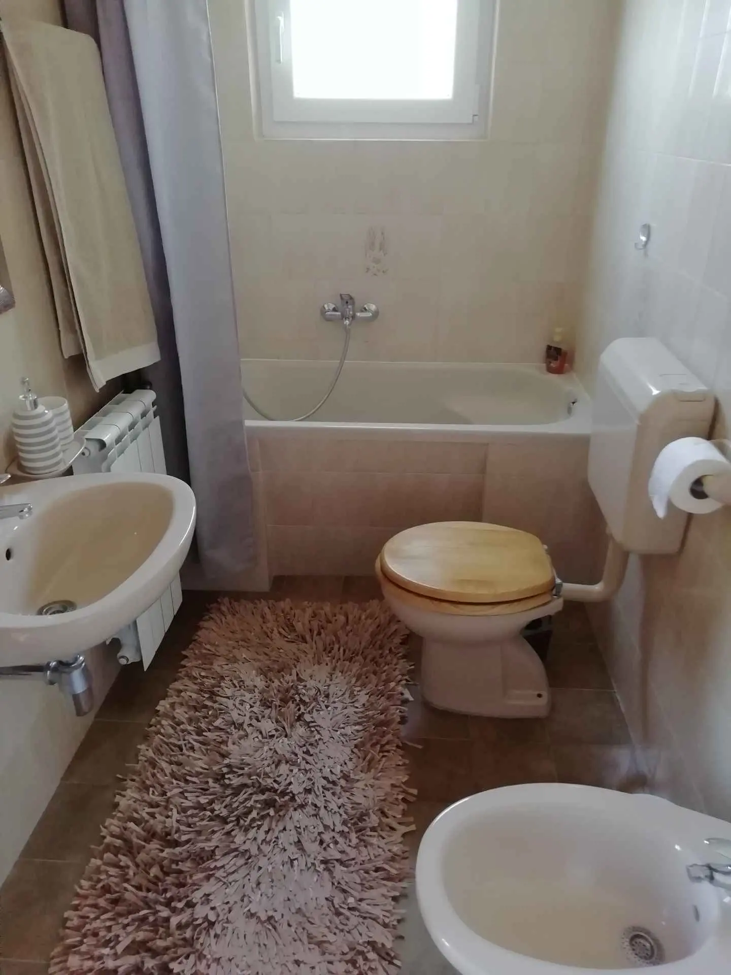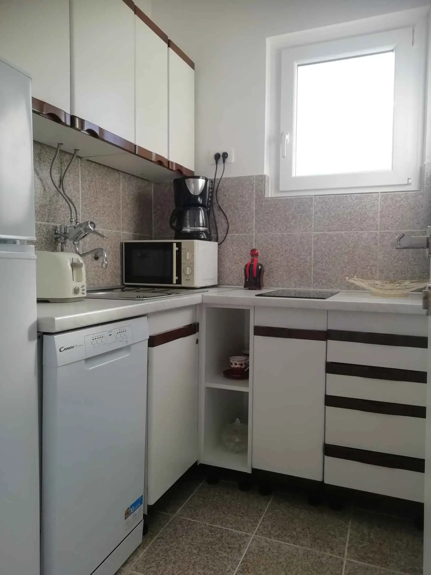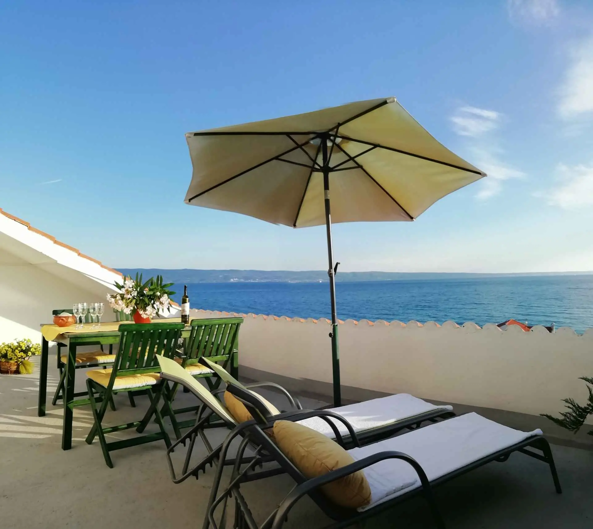 Het appartement voor twee personen, dat een klein kind kan krijgen, bevindt zich op de zolder van een gezinswoning en heeft een terras van 25 m2, dat is uitgerust met een grote eettafel, een speciale set om 's ochtends te genieten van koffie, ligstoelen en een douche. Het is de enige ruimte die we in het huis huren, dus de privacy is gewaarborgd, evenals de privacy van het gebruik van de grote mediterrane tuin en barbecue, en een badmintonveld. Het strand ligt op twee minuten lopen van het huis en naast het strand zijn er sportfaciliteiten: een volleybal- en voetbalveld. Accommodatie is inclusief gratis parkeren