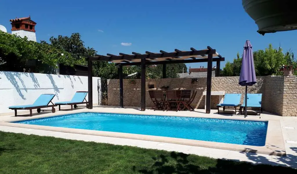 PRIVE WONING MET 3 EENHEDEN EN GEDEELD ZWEMBAD Ons huis en 3 appartementen zijn gelegen in een rustige straat, tegenover een dennenbos, en op slechts twee kilometer afstand van zowel het strand als het centrum van Pula. In de buitenruimte is er een mooie en goed onderhouden tuin aanwezig. Het zwembad is in 2012 nieuw gebouwd en biedt een mooi terras en voldoende tuinmeubilair. Ook zijn er 2 plaatsen voor barbecue klaar voor onze gasten en ook buitendouche. Voor de woning is tevens parkeergelegenheid aanwezig. Al onze appartementen zijn volledig uitgerust en geschikt voor gezinnen en jonge stellen. Wij vinden het erg belangrijk dat u zich thuis voelt en daarom proberen wij een dergelijke sfeer in de appartementen en in de tuin te realiseren. Honderd meter van het huis is er een bushalte om de stad in te gaan. Kleinere supermarkten, restaurants en zelfs grotere winkelcentra zijn in de buurt en ook op loopafstand te vinden. APPARTEMENT A3 Het appartement A3 (5 + 1) heeft een aparte ingang en twee terrassen en heeft directe toegang tot het zwembad. Het biedt een rustige ligging en veel privacy en heeft een oppervlakte van 55 vierkante meter. Het is modern en ruim en ideaal voor een vakantie met familie of jonge stellen. Deze woning heeft twee slaapkamers, een met twee eenpersoonsbedden en de andere met drie eenpersoonsbedden, die ook tegen elkaar kunnen worden geschoven. Er is een gezellige woon- en eetkamer met open haard en tv. Hier is ook een slaapbank voor de zesde persoon. Het appartement is voorzien van airconditioning, heeft een aparte keuken en de badkamer met douche. Voor appartement omvat ook een klein terras en een ander terras met uitzicht op het zwembad. APPARTEMENT A2 Het appartement A2 (4 + 1) is gelegen op de eerste verdieping van ons woonhuis en heeft een oppervlakte van circa 50 m². Deze woning heeft twee slaapkamers, een met 2 eenpersoonsbedden en de andere met 1 tweepersoonsbed. Het heeft een woon- en eetkamer met een kitchenette op dezelfde plek. Hier is ook een slaapbank voor de vijfde persoon. Het appartement is voorzien van airconditioning. De badkamer heeft een douche. Bij het appartement hoort ook een klein terras met mooi uitzicht op de tuin. APPARTEMENT A1 Het appartement A1 (2 + 2) is gelegen op de begane grond van ons woonhuis en heeft een oppervlakte van circa 45 vierkante meter. Dit appartement heeft één slaapkamer met een tweepersoonsbed. Er is een gezellige woonkamer met een slaapbank voor twee personen. De keuken heeft ook een eettafel voor 4 personen. Het appartement is voorzien van airconditioning. De badkamer heeft een douche. Voor appartement omvat ook een klein terras met uitzicht op de tuin.