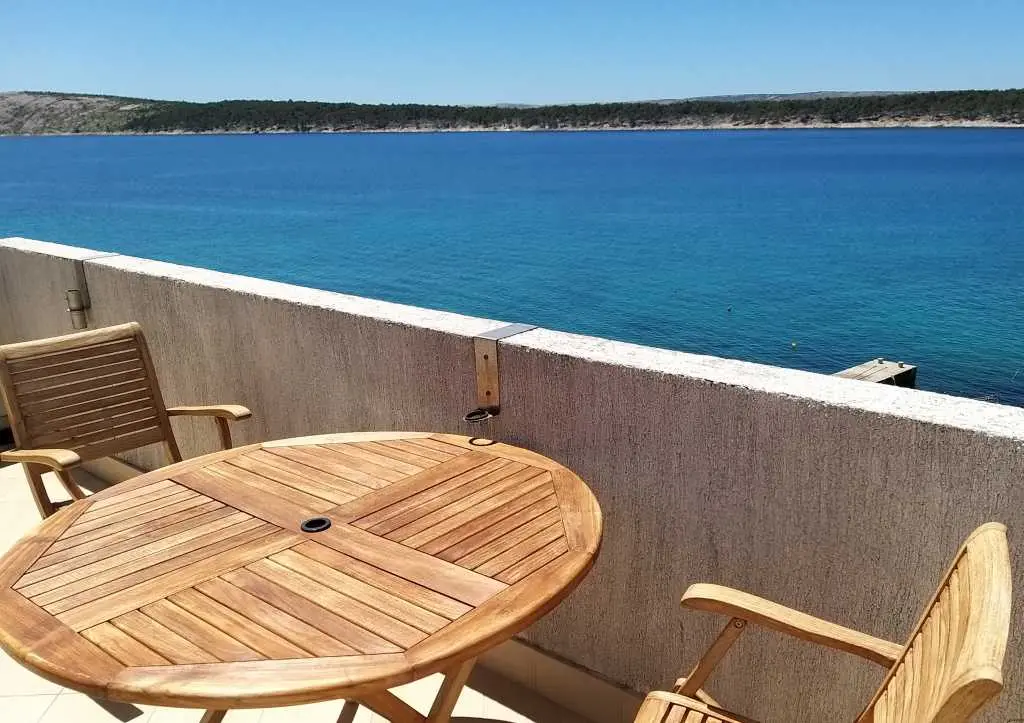 Appartement in het huis aan zee (naast het strand) met parkeerplaats en nautische ligplaats. Het appartement bestaat uit 2 x slaapkamer, keuken / eetkamer, hal, badkamer en een groot terras met uitzicht op zee. Het appartement is voorzien van airconditioning, tv, internet via WI-FI, vaatwasser en wasmachine.