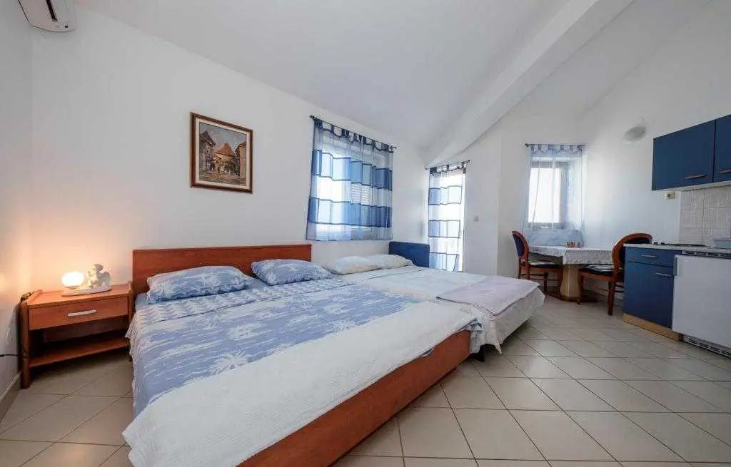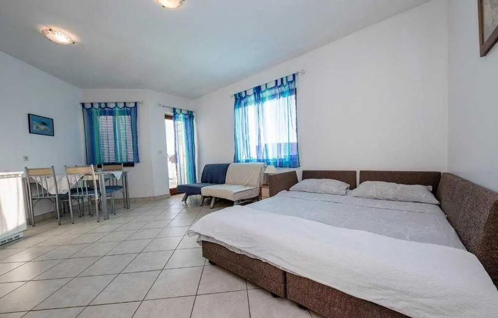 De appartementen zijn gelegen in Barbat, rustig gelegen, ideaal voor families met kinderen. Er zijn vier studio appartementen (2 + 2) en twee appartementen (2 + 2, 4 + 2). Dit zijn studio appartementen - alles is in een grote kamer, 4 bedden, keuken en eetkamer + badkamer en terras. Appartement 2 + 2 - aparte slaapkamer, woonkamer met twee bedden, keuken en eetkamer + badkamer en terras. Appartement 4 + 2-twee slaapkamers (een op de zolder), woonkamer met tweepersoonsbed, keuken en eetkamer + badkamer en terras. Gasten kunnen allemaal gebruik maken van over de tuin, waaronder een kinderspeelplaats (trampoline, schommels, glijbanen, zandbakken), een klein zwembad voor kinderen, barbecue met tuinhuisje, buitendouche, parkeerplaats. Alle appartementen hebben airconditioning, satelliet-tv, WiFi, een terras met uitzicht op de zee. Welkom drankje, een klein cadeau bij vertrek. Kom en beleef de schoonheid van ons eiland in de comfortabele omgeving van onze appartementen.