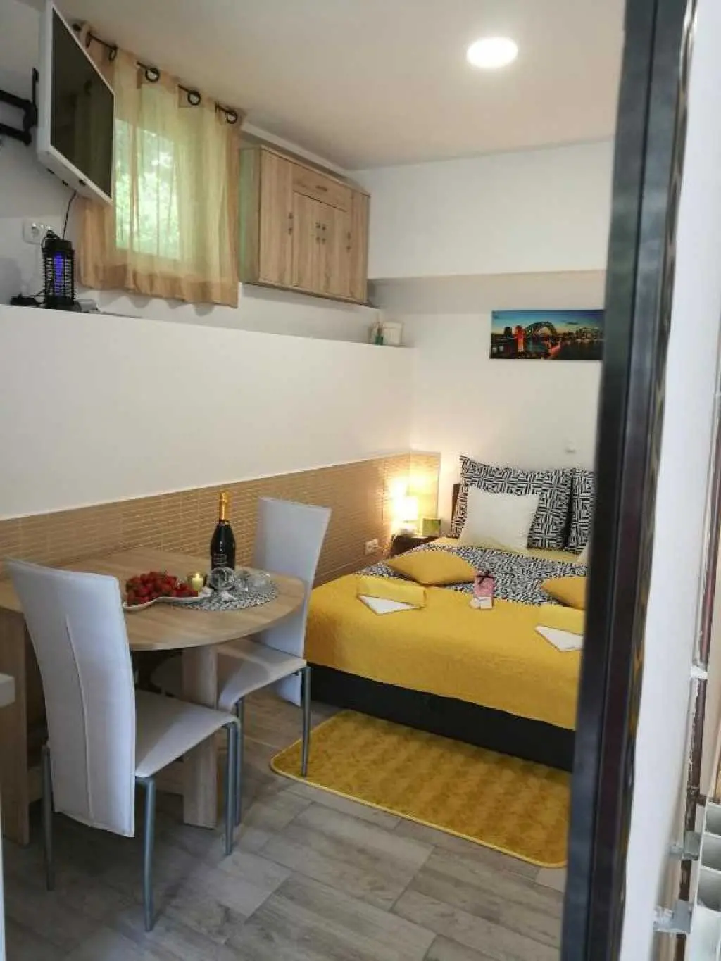 Studio apartman je opremljen svim potrebnim stvarima, uredno, čisto, domaćini ljubazni. Pogled i terasa su predivni. Oduševila me šetnica uz more koja je opremljena spravama za vježbanje idealno za rekreaciju. Oaza mira. Sve je kao i na slikama. Svakako ćemo doći opet za koji mjesec.
