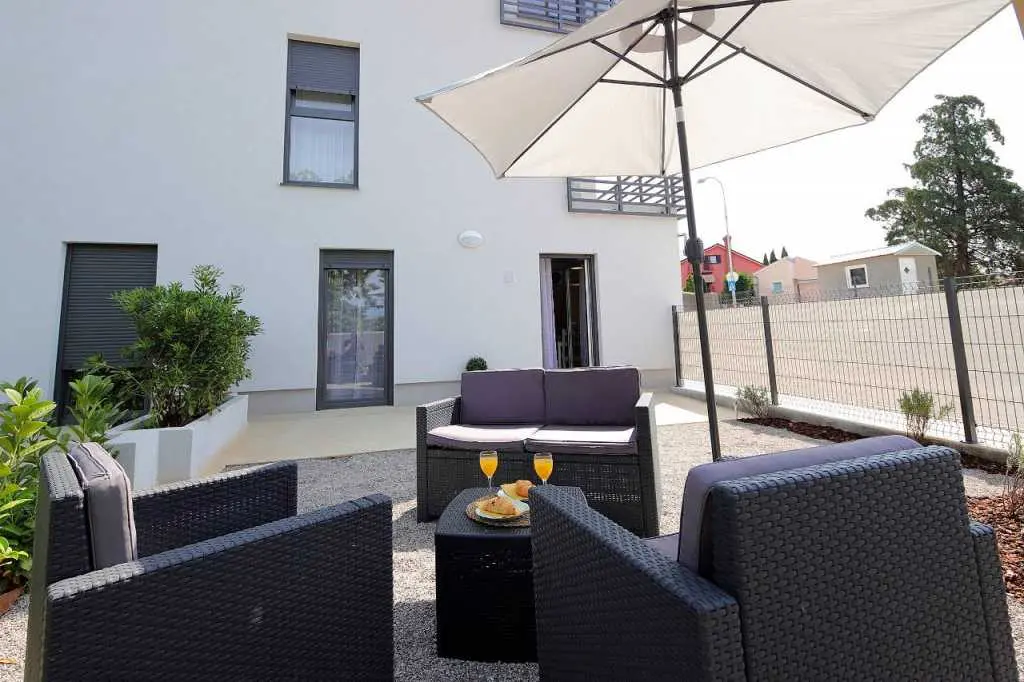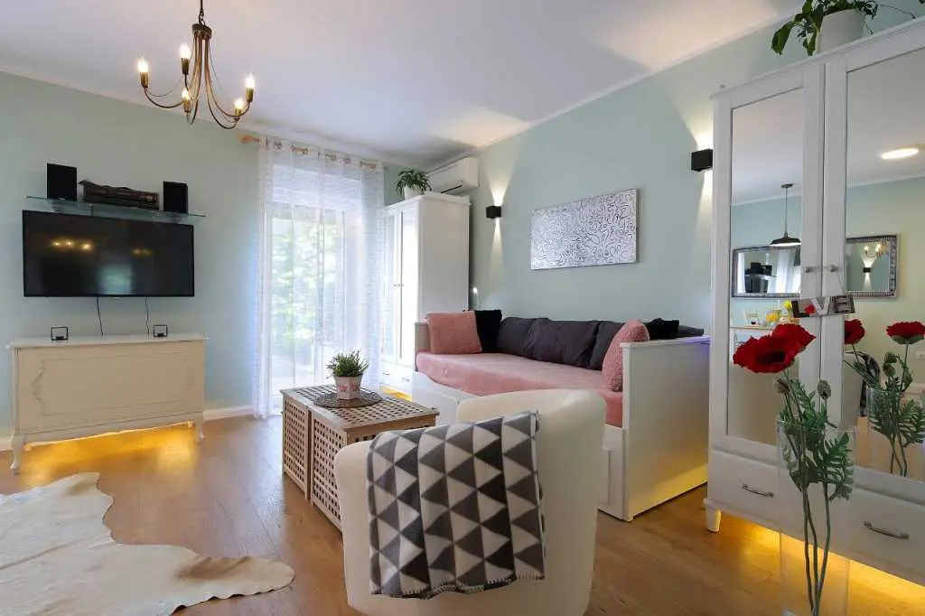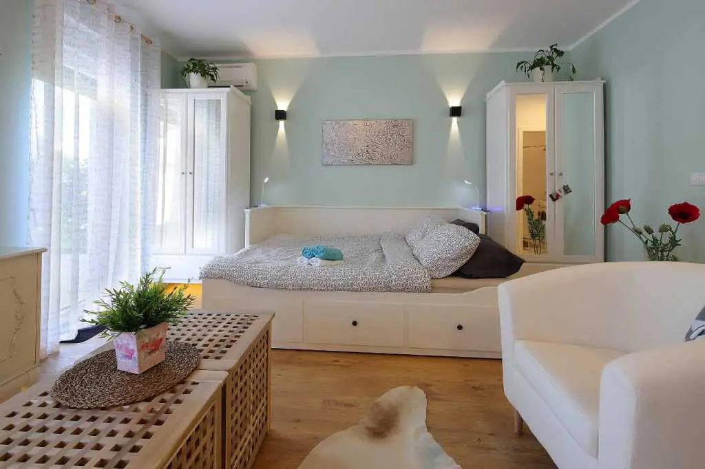 Studio Apartmen Ada 2 is geheel nieuw ingericht in een nieuw gebouw. Apptmen heeft een eigen parkeerplaats.Ook onze gasten kunnen ontspannen in de privétuin van de accommodatie.Wij bieden u alles wat u nodig heeft voor uw verblijf, gratis wifi, airconditioning, flatscreen scherm tv, met satelliet kanalen, kluis, was-droogmachine. Ook denken we aan onze kleine windstoten en bieden wij cheldrens hoge stoel en bed.