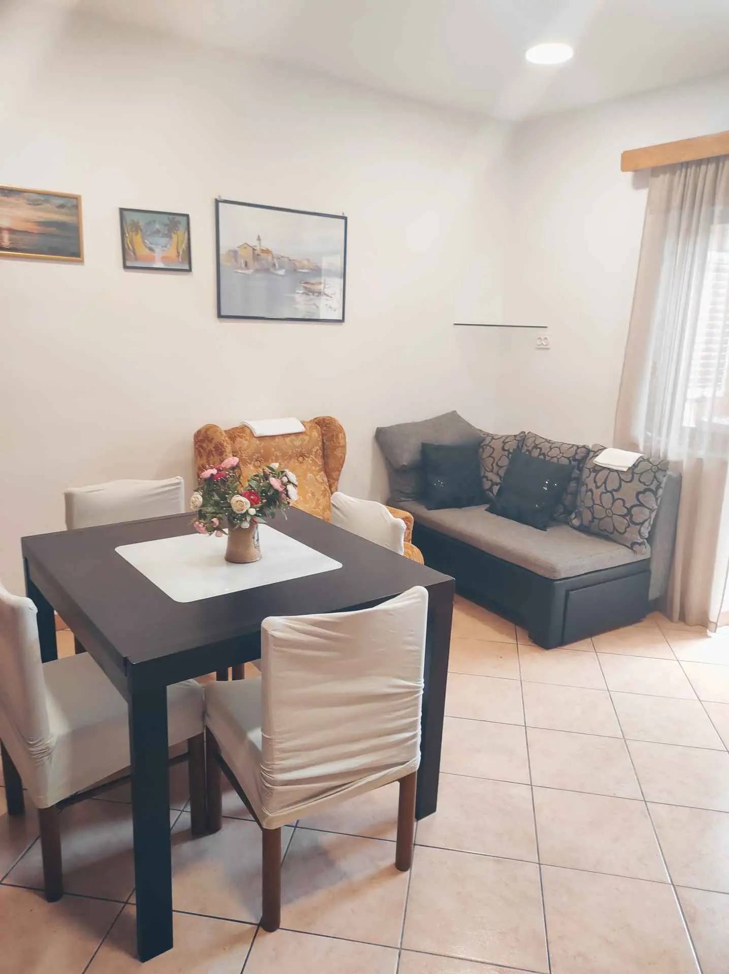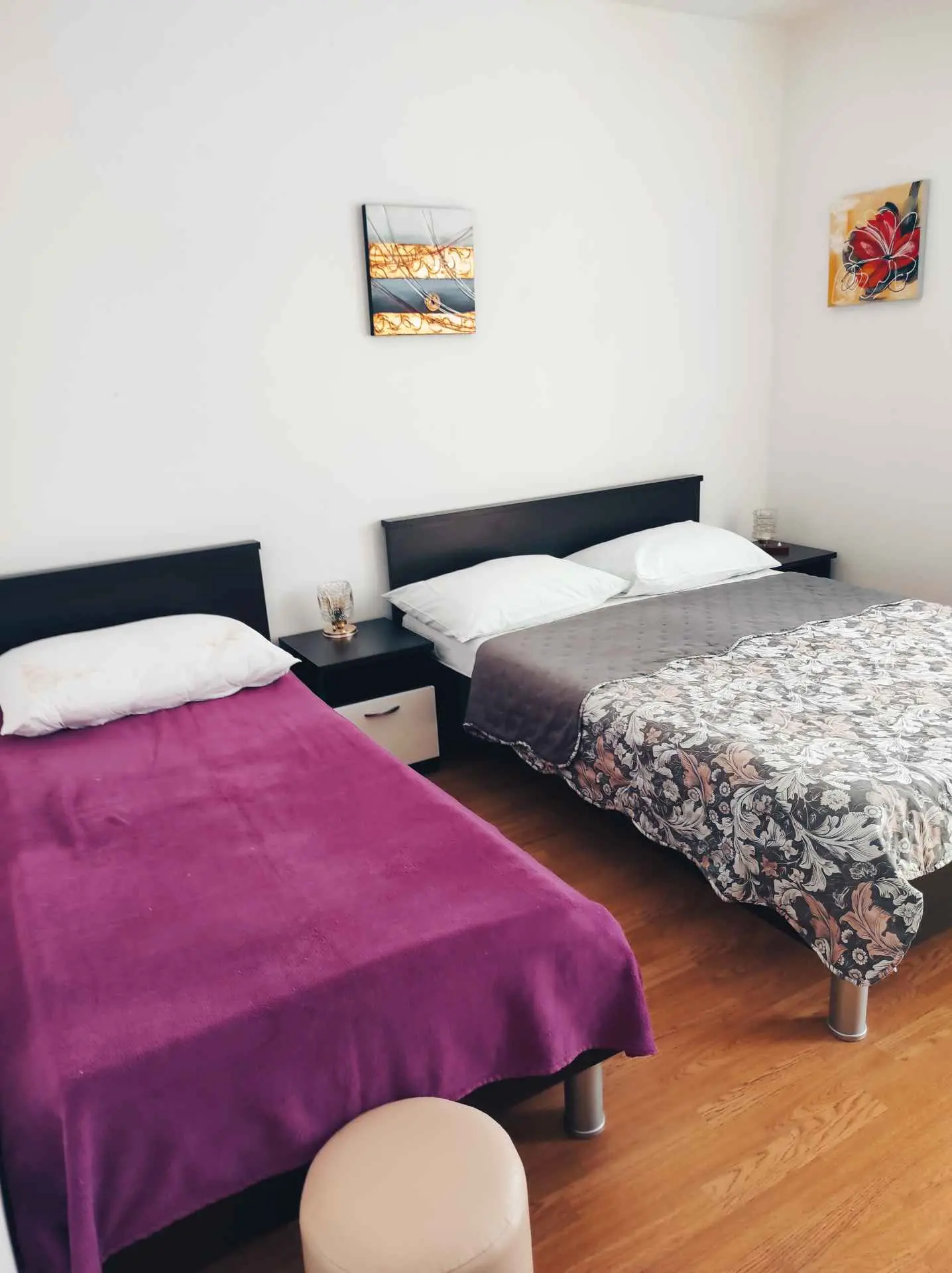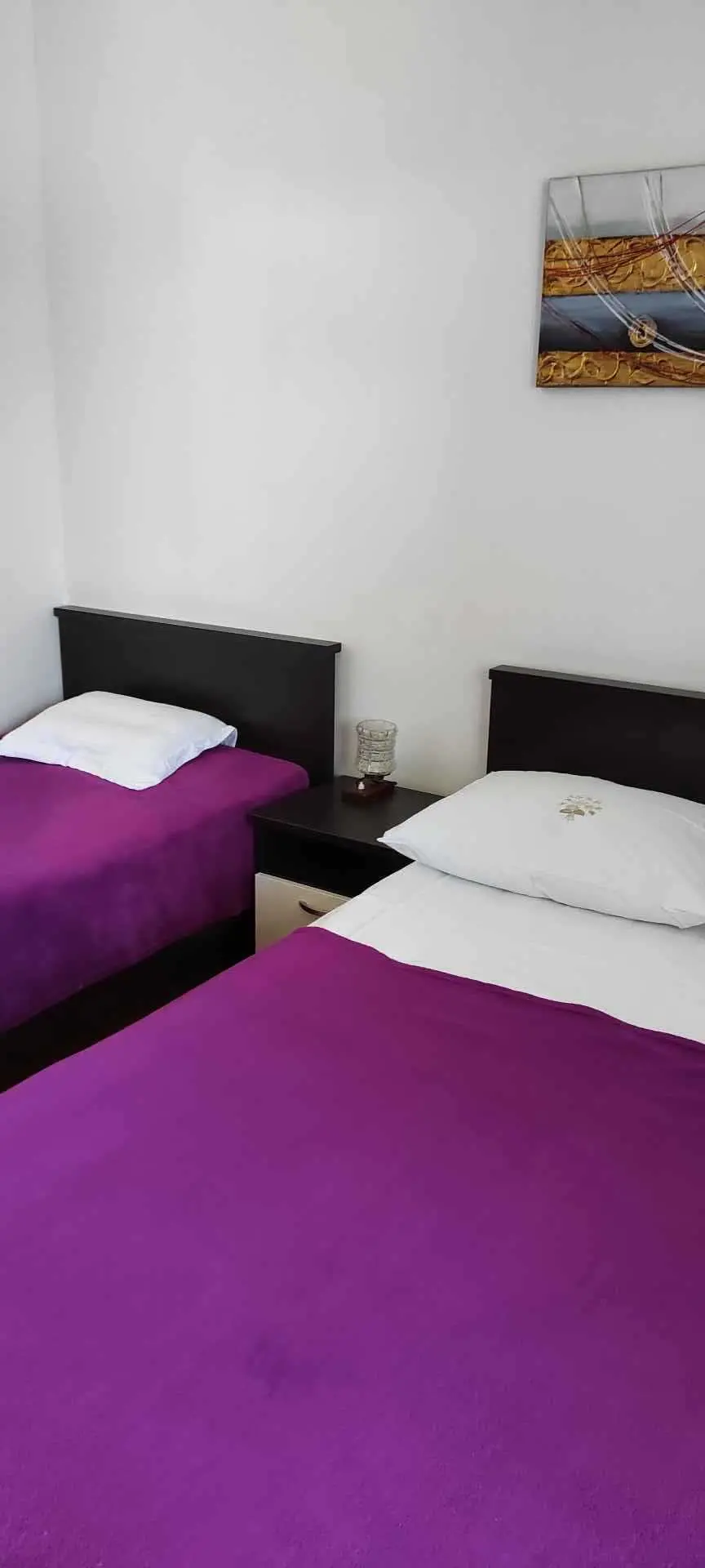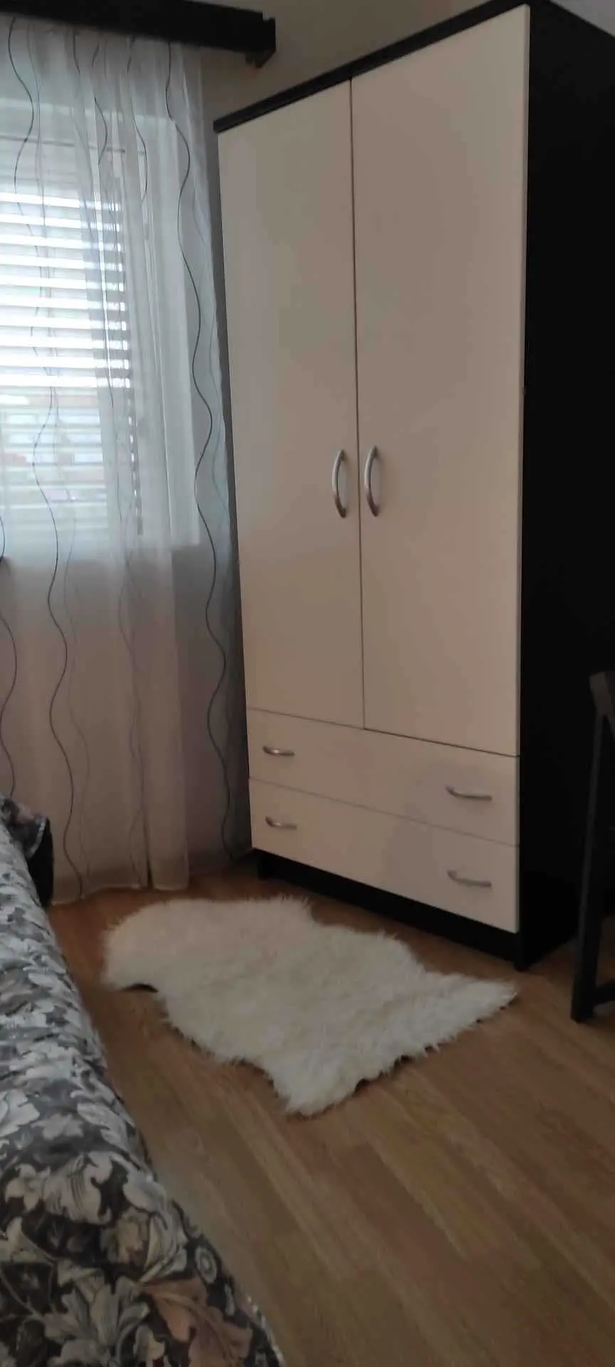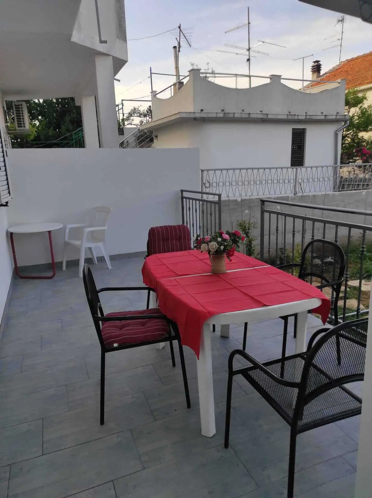 Het appartement bevindt zich op de begane grond van het huis en bestaat uit 2 slaapkamers, een keuken met een woonkamer, een badkamer en een balkon. Het heeft airconditioning, internet en SAT/TV. In de ene kamer zijn er 2 bedden, 1 voor 1 persoon en de andere Frans 140x200 voor 2 personen en in de tweede kamer een groot tweepersoonsbed 200x180 en 1 bed voor 1 persoon 200x90. Er is een hoekbank in de keuken. Er is parkeergelegenheid in de tuin voor een auto. Het appartement heeft een groot terras van 20 vierkante meter met uitzicht op de tuin.