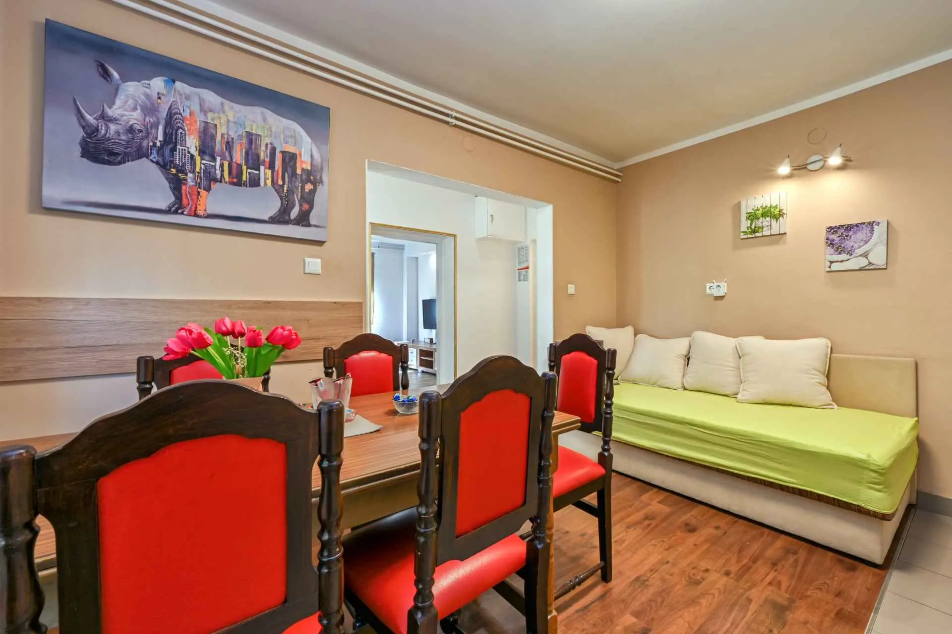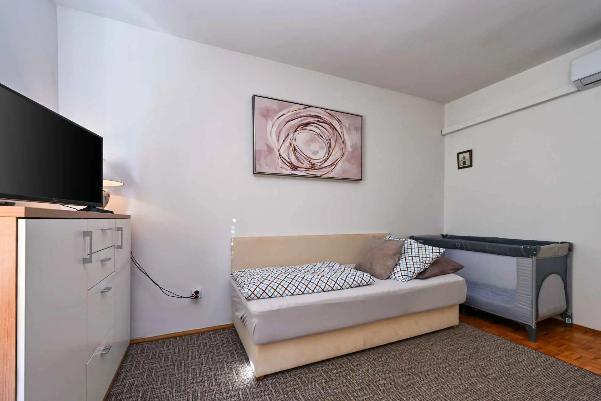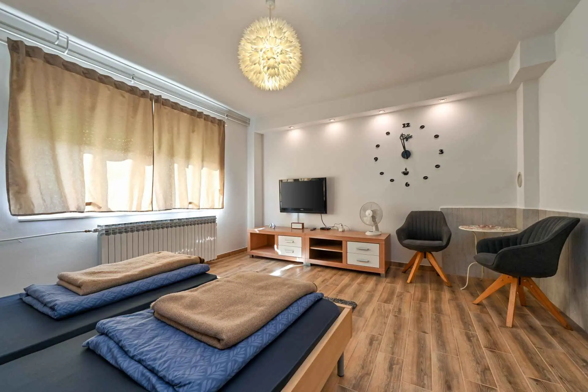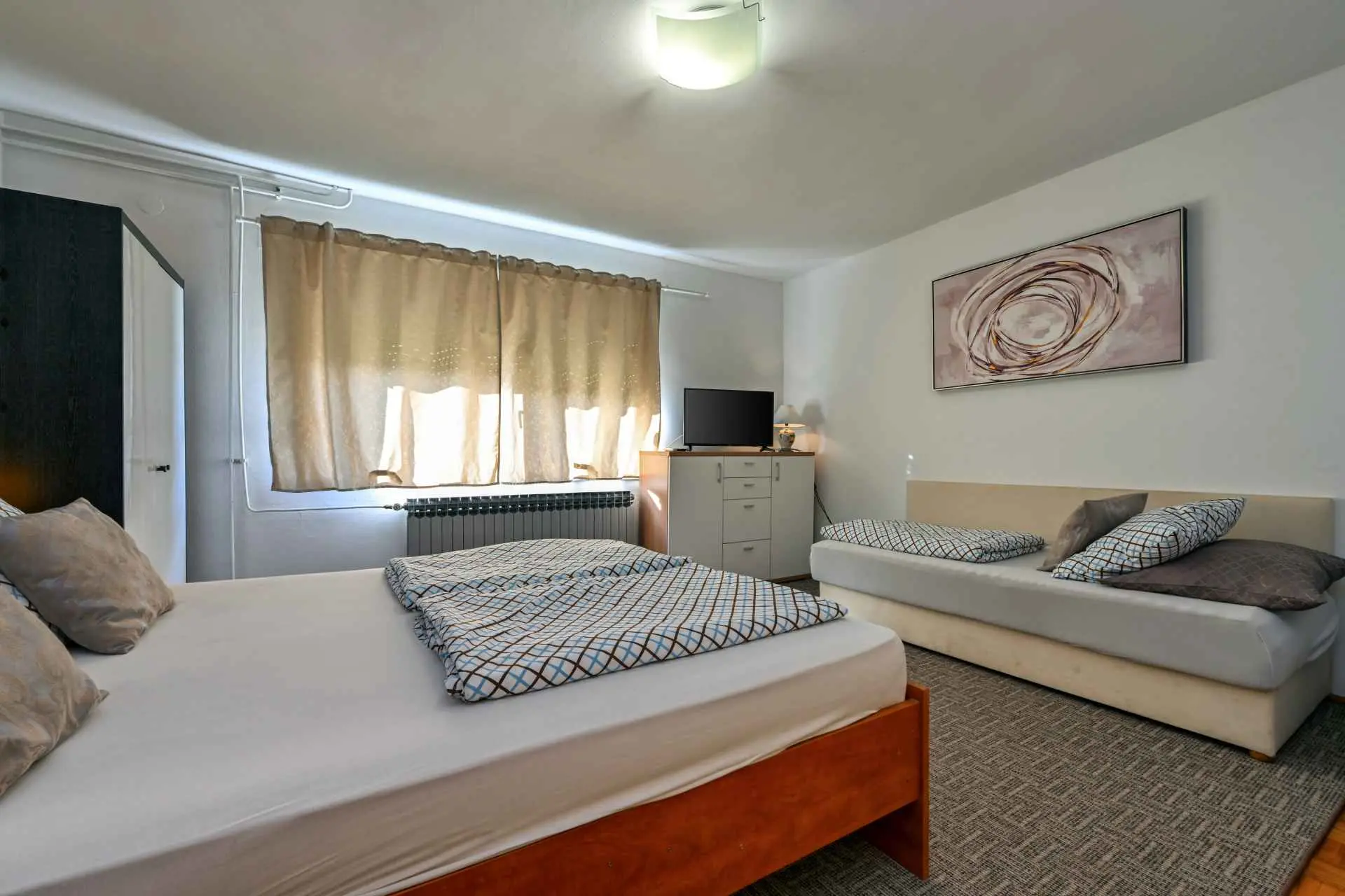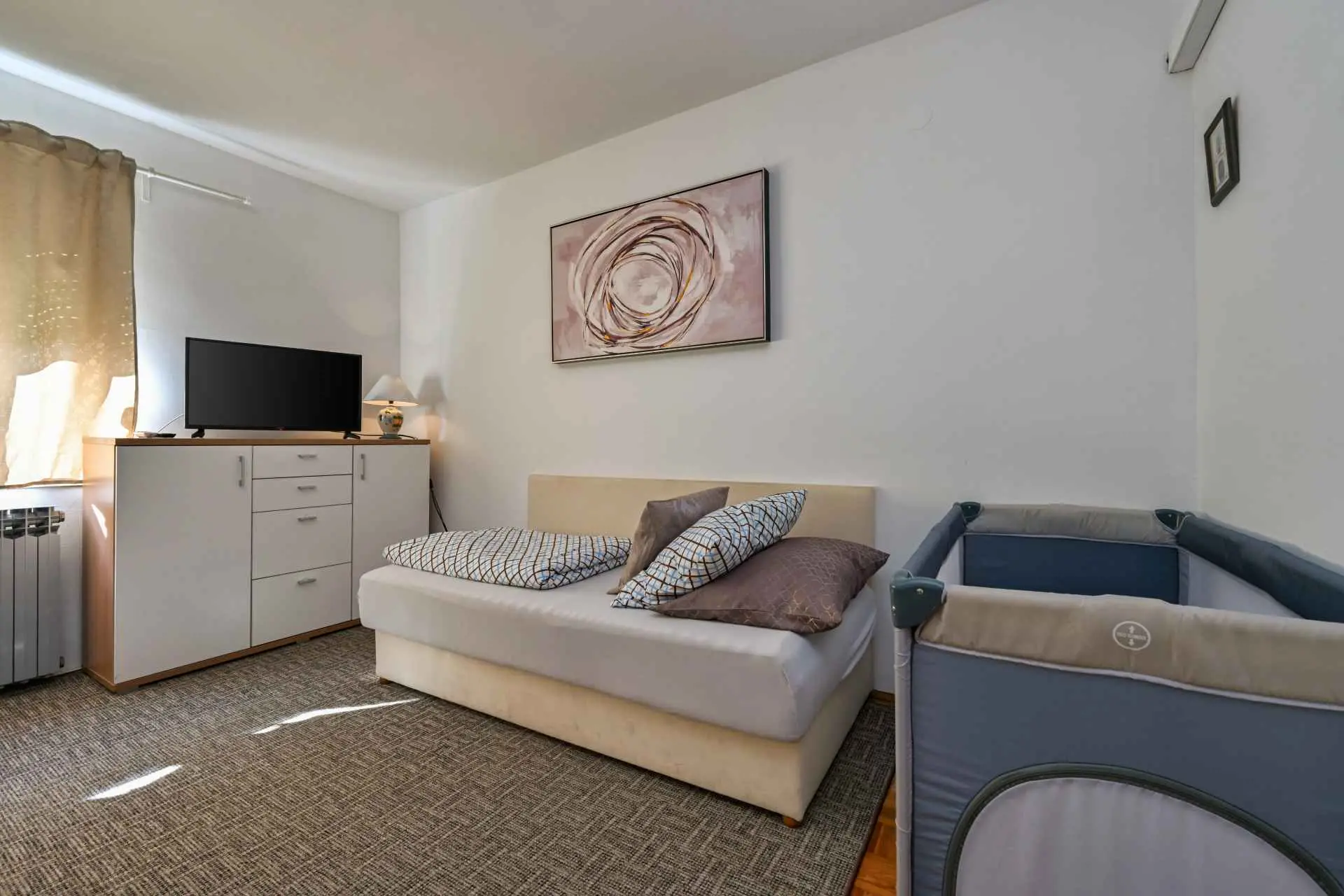Appartement Jura ligt in het bredere centrum van de stad Sveti Ivan Zelina, naast het sport- en recreatiecentrum Zelina. Het appartement is ca. 85 m2, met twee slaapkamers, een keuken met eetkamer en een badkamer. De ruimte is voorzien van airconditioning en voorzien van centrale verwarming op gas. Optisch internet is gratis. Er zijn twee parkeerplaatsen op het erf naast het appartement. Huisdieren kunnen gebruik maken van de tuin vanaf 1000 m2. De keuken is volledig uitgerust. Een wasmachine en vaatwasser zijn aanwezig in het appartement. Welkom.