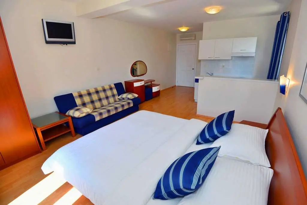 Appartementen Dalmatina liggen direct aan zee in een kleine plaats genaamd Živogošće - Blato, bekend om zijn prachtige stranden, waarvan sommige naakt zijn. Ruime appartementen, grote terrassen en een nauw contact met de zee zullen in uw herinnering blijven als de Middellandse Zee van uw dromen. Makarska Riviera ligt in het centrale deel van de Dalmatische kust, 60 km ten zuiden van de stad Split en 120 km ten noorden van Dubrovnik, en wordt beschouwd als het mooiste deel van de Adriatische kust. De plaatsen, elk met hun eigen bijzondere, maar andere sfeer, bevinden zich in zo'n klein gebied. Van Makarska als het centrum van entertainment en nachtleven tot kleine plaatsen omringd door pijnbomen waar u in alle rust kunt genieten. Živogošće - Blato behoort tot zo'n kleine plaats, slechts 20 km ten zuiden van Makarska. Welkom!