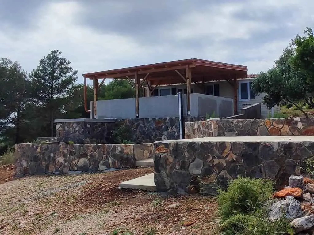 Stacaravan Posidonia ligt aan de zuidkant van het eiland Pasman, op een heuvel boven de baai Druce. Het terras biedt een prachtig uitzicht op de zee, de eilanden Zizanj, Kosara, Gangaro en andere nabijgelegen eilanden. Afstand van de zee is ongeveer 200 m. Het afgelegen huis Posidonia is bereikbaar met de auto, parkeerplaats bevindt zich naast het huis in de tuin. De stacaravan is gelegen in een afgelegen gebied en biedt zijn gasten volledige rust en privacy.