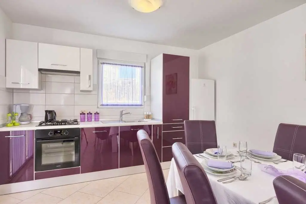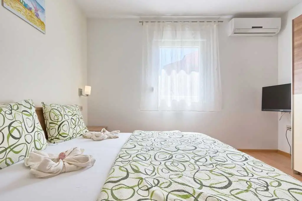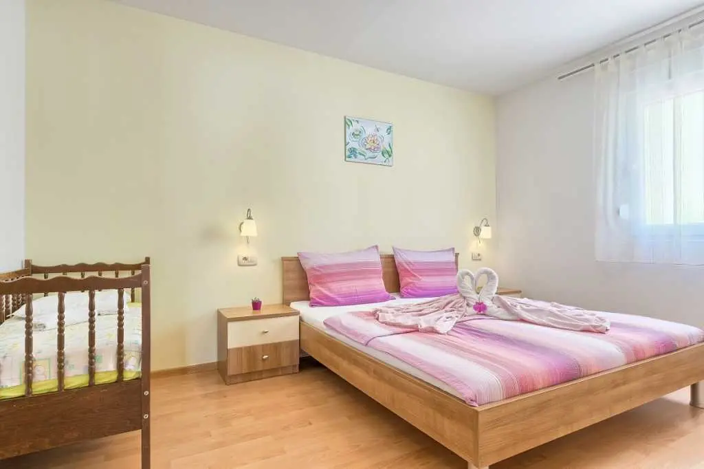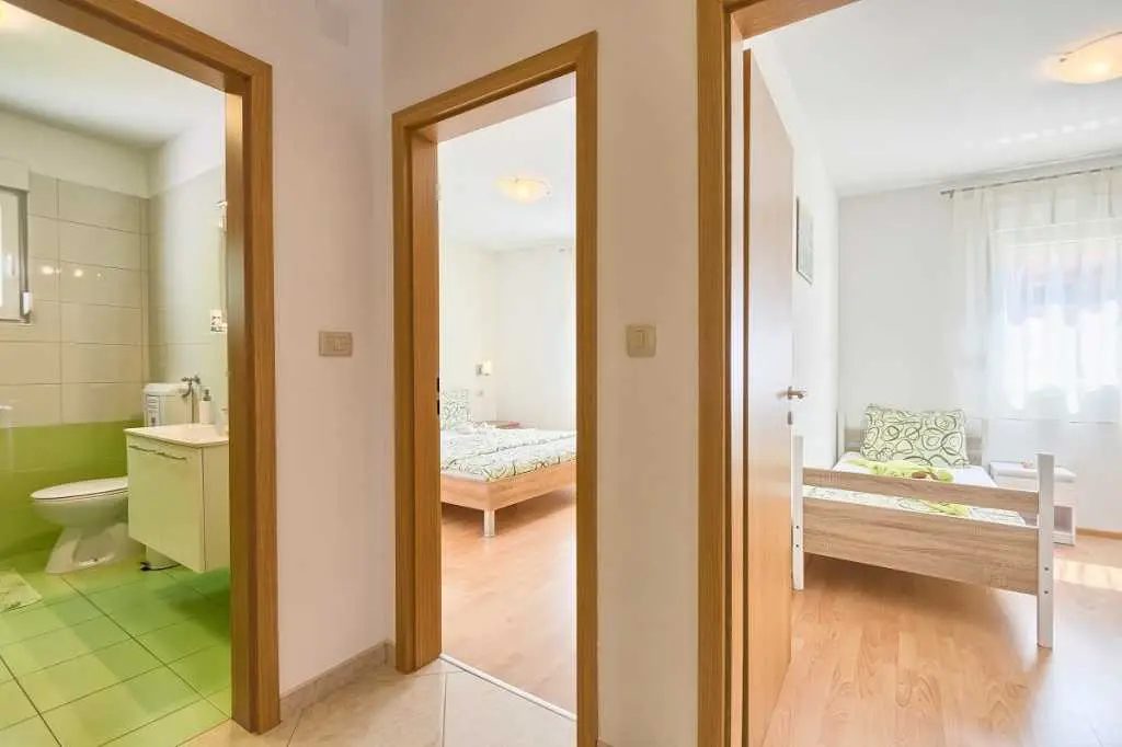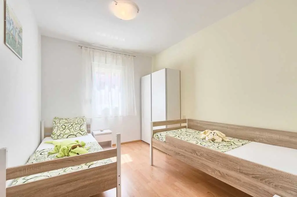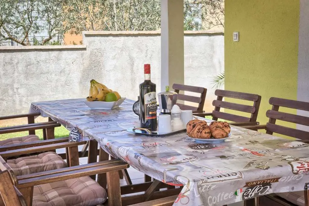 Dit mooie vakantiehuis ligt in Medulin, op ongeveer 400 m van het zandstrand. Het huis is gelegen op een volledig omheind perceel met een garage voor één voertuig, fietsen ... In de tuin zijn er schommels, een kleine glijbaan, een speeltuin voor de kinderen en een tafelvoetbal in de garage. Het huis is zeer goed ingericht. Vanuit de woonkamer komt u uit op een overdekt terras met tafel en stoelen en daarnaast bevindt zich een open haard. Holiday House Valnessa ligt in de buurt van de promenade van Medulin, het strand en het lunapark. Uw ideale vakantie in Medulin begint in vakantiehuis Valnessa! Vakantiehuis Valnessa is bedoeld voor 6+2 personen. Het is gebouwd in 2015 en heeft 95 m2 + 530 m2 tuin en 30m2 garage. Het heeft 3 slaapkamers: kamer 1 (1 tweepersoonsbed + kinderbed, tv, airconditioning), kamer 2 (1 tweepersoonsbed, tv, airconditioning), kamer 3 (2 bedden voor 1 persoon). Het heeft 2 badkamers met douche, wastafel, toilet en een wasmachine + 1 toilet met wastafel. Woonkamer heeft een slaapbank (extra bed). 3 airconditioners, 3 tv's, gratis wifi, keuken uitgerust met vaatwasser, kookplaat, elektrische oven, fornuis (gas + elektriciteit), magnetron, koffiezetapparaat, broodrooster, koelkast met vriesvak