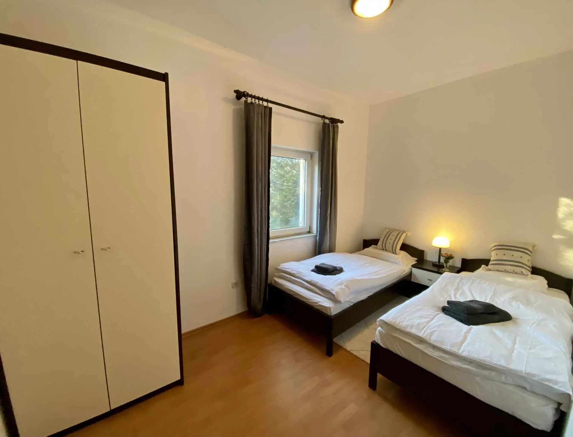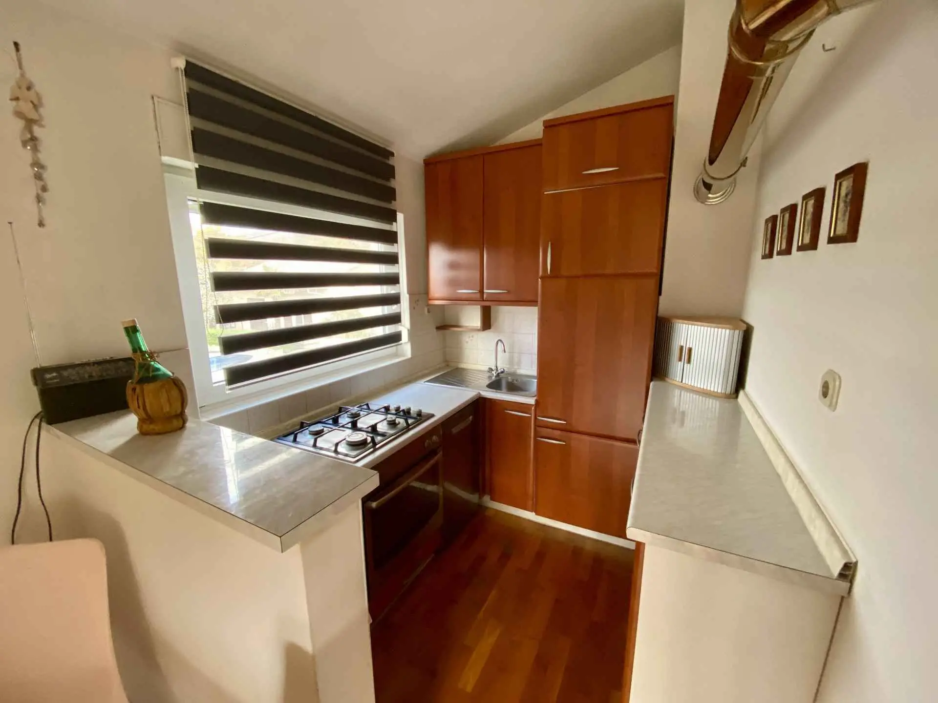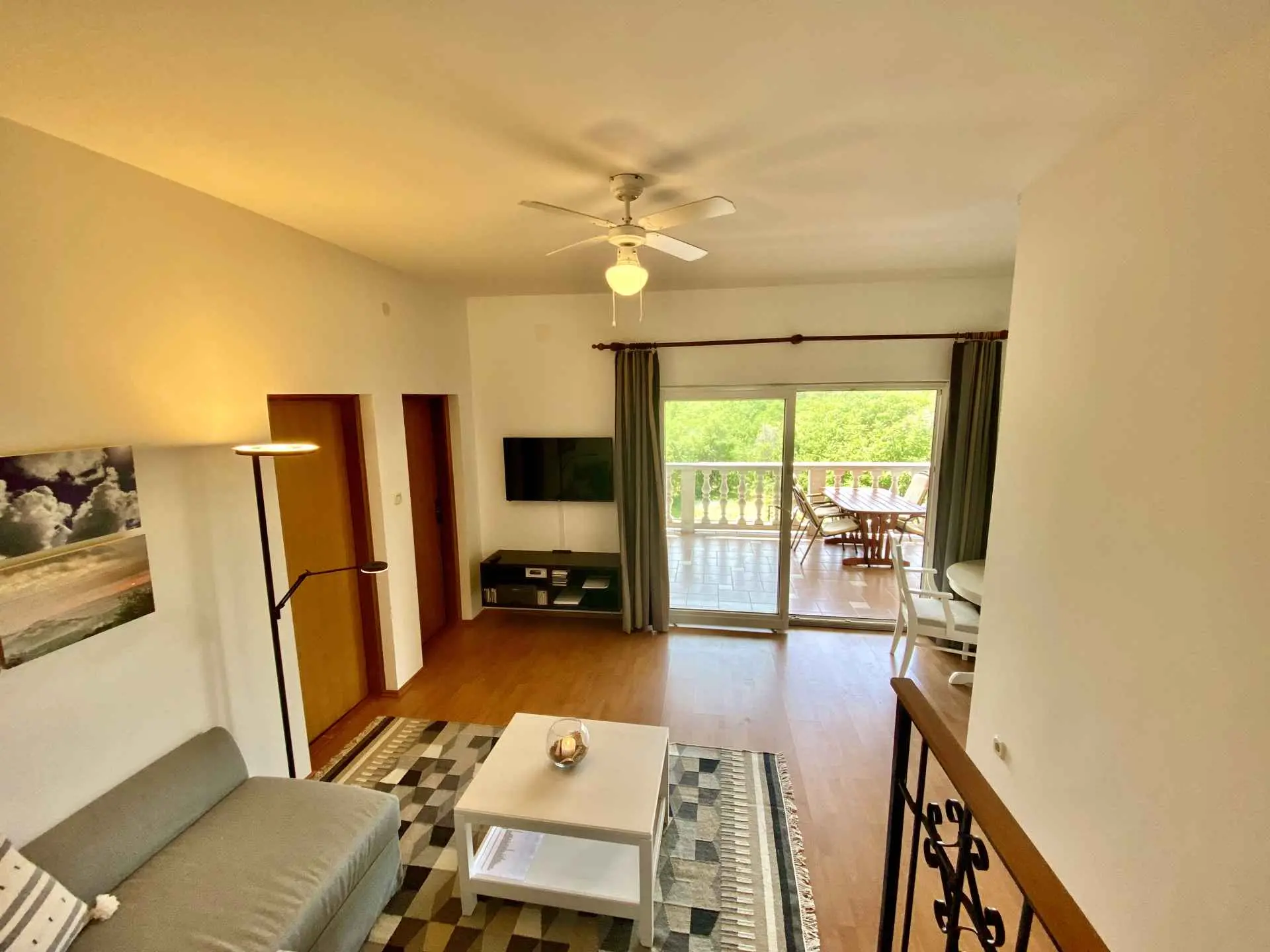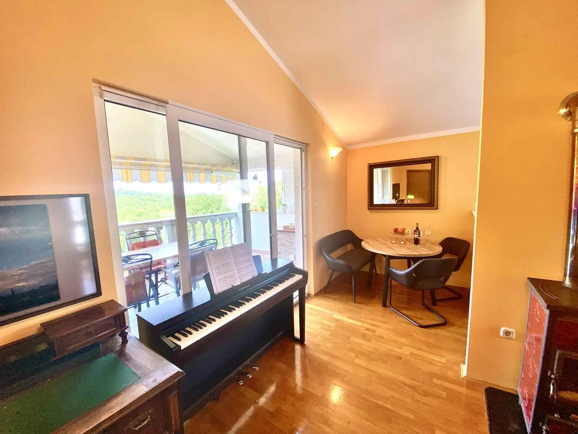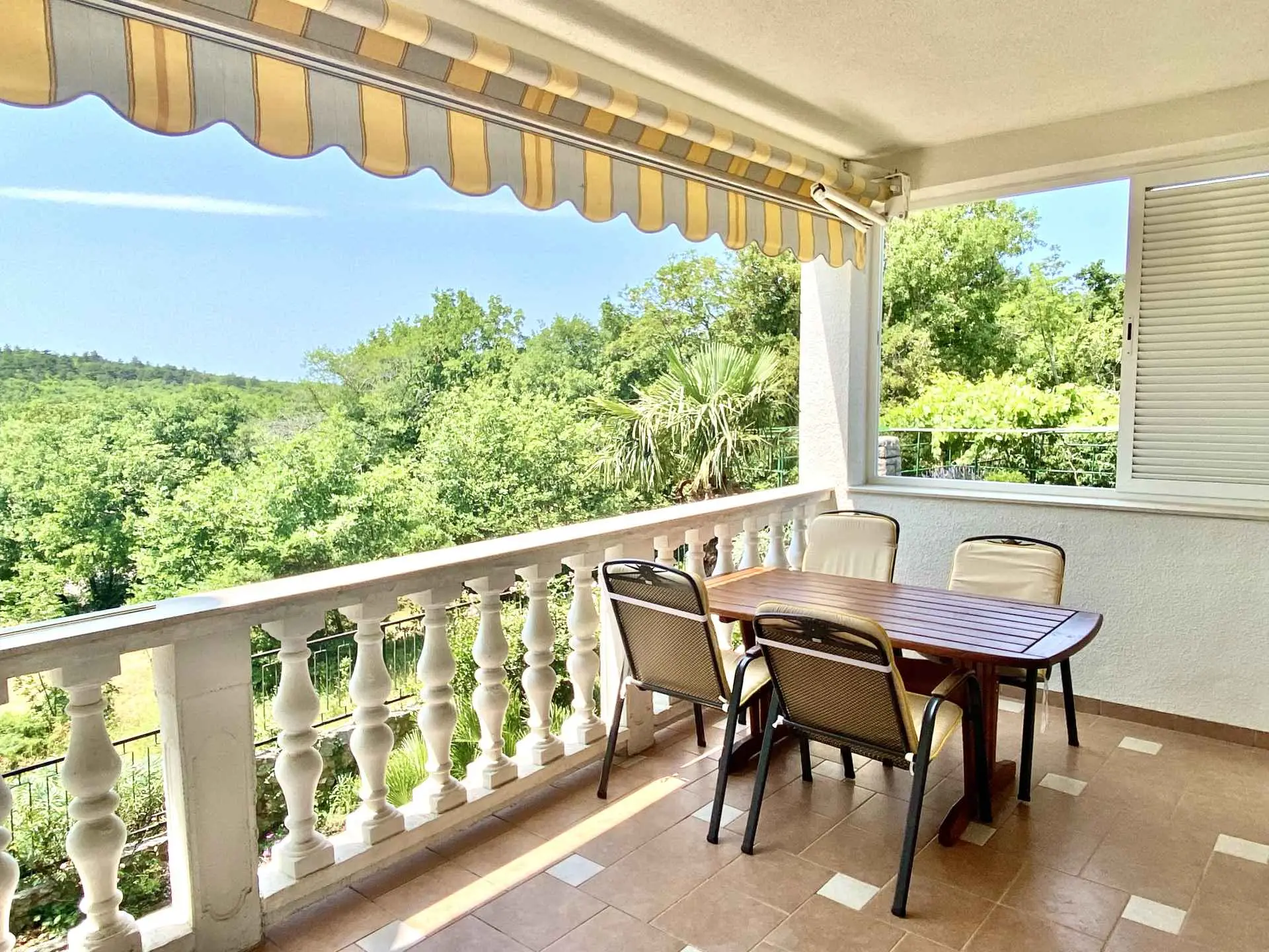Villa Teresa Kvarnerbaai, Kroatië Eén stap naar de zee, twee stappen naar de sneeuw 220 meter boven de Adriatische Zee met uitzicht op de eilanden Krk en Cres ligt het prachtige dorp Donji Zagon met slechts 150 inwoners, vlakbij het stadje Novi Vinodolski. Aan het einde van het dorp ligt Villa Theresa in een tuin van 1000 m² met een verwarmd zwembad, sauna en verwarmd bubbelbad. Het is slechts 5 minuten naar de Adriatische Zee en - moeilijk te geloven - slechts een uur en u kunt bijvoorbeeld gaan skiën in Platak. EEN VAKANTIEHUIS HET HELE JAAR DOOR U kunt het hele huis voor uzelf huren Het huis bestaat uit twee grote appartementen (elk 78 vierkante meter), die u apart of samen kunt gebruiken via een gemeenschappelijke trap. Ideaal voor grote gezinnen of als u op vakantie wilt met een familievriend. Elk appartement heeft een woonkamer, 2 slaapkamers, een keuken met een zithoek en een badkamer, evenals een groot balkon met een grote tafel en stoelen. Op de eerste verdieping bevindt zich een zomerkeuken. Elke slaapkamer biedt plaats aan twee personen, daarnaast staat er in elke woonkamer een slaapbank voor twee personen. In de kelder is een extra slaapkamer voor twee personen. Maximaal 10 personen (exclusief kinderbedjes) is dus mogelijk. Er is een verwarmd zwembad en een verwarmde whirlpool op het benedenterras en een sauna in de kelder. In de tuin vindt u een barbecue met eethoek en een volledig uitgeruste tuinkeuken. Er zijn drie parkeerplaatsen voor auto's met een laadstation voor elektrische auto's op het terrein van het huis. Details vindt u bij het betreffende appartement.
