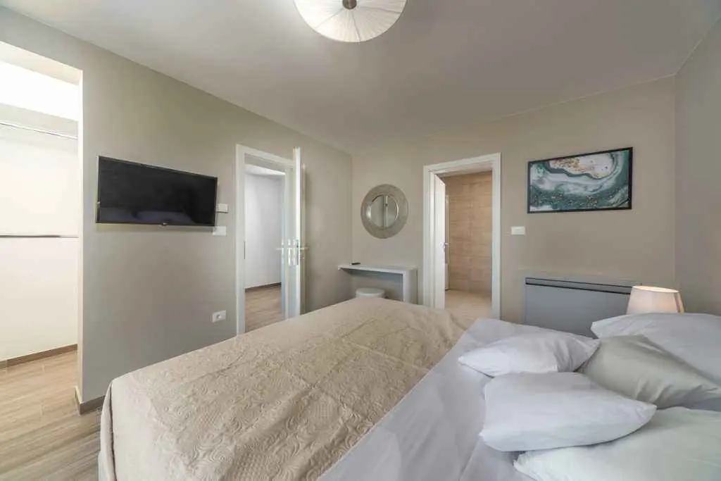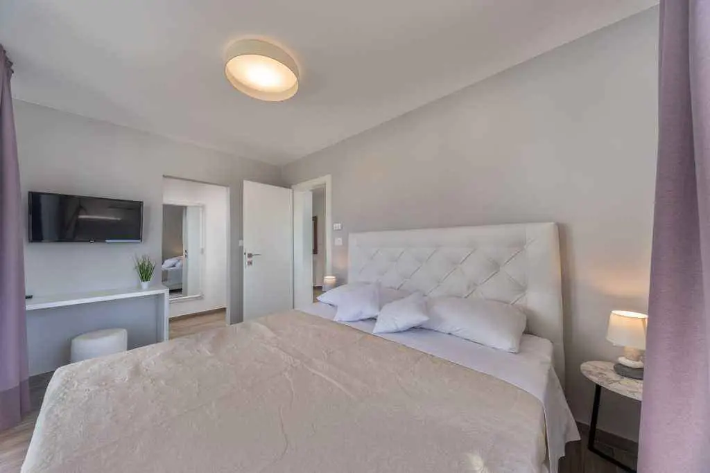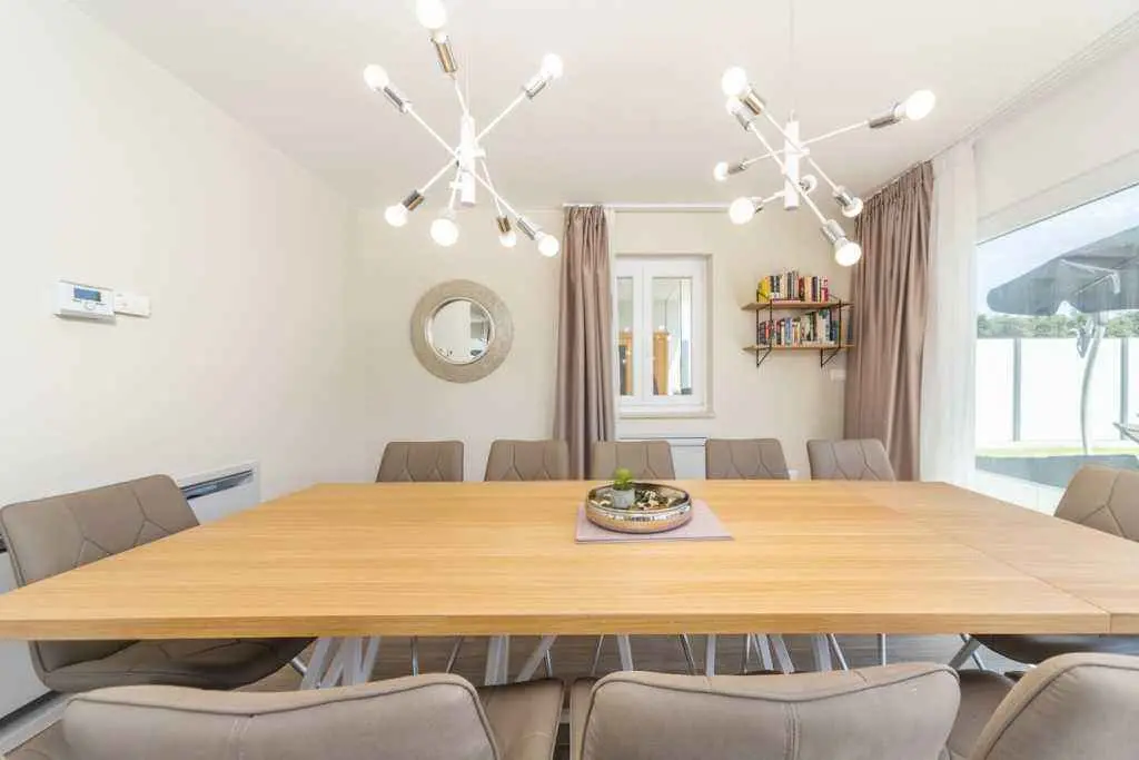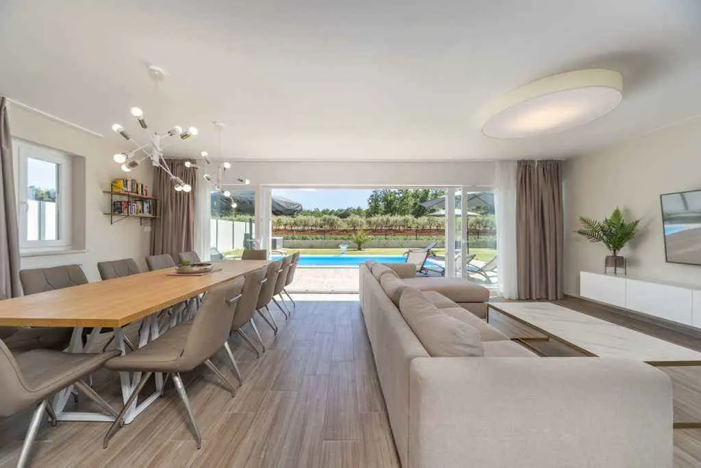Villa Eni ligt op een rustige en vredige plek, op slechts vijf kilometer afstand van het centrum van Poreč. Het verblijf is ideaal voor gasten die een rustige omgeving willen, maar toch dicht genoeg bij de zee, stranden en Istrische steden die over de hele wereld bekend zijn. In de villa bevinden zich in totaal zes slaapkamers, waarvan vier met tweepersoons boxspringbedden en twee eveneens met tweepersoons boxspringbedden maar met de mogelijkheid om te scheiden in aparte bedden. Alle kamers bieden een prachtig uitzicht op het sprookjesachtige Istrische landschap, de olijfgaarden en het betoverende groen van de Istrische heuvels. Er zijn ook vier comfortabele en harmonieus ingerichte badkamers, waarvan één is uitgerust met een ligbad en de andere drie met douches en een apart toilet. Op de begane grond is er een prachtig moderne en volledig uitgeruste keuken en woonkamer met open haard. Op het erf bevindt zich een zwembad van 26,5 m2 met verwarming, massagepompen, een waterval, een jacuzzi en een sauna en voor de jongste gasten is er een kinderspeelplaats met trampoline. Mis de kans niet om Poreč te bezoeken, een stad van cultuur en toerisme, amusement en sport, die elk jaar door duizenden mensen van over de hele wereld wordt bezocht vanwege de natuurlijke en culturele attracties. Istrië biedt een rijk toeristisch aanbod - wijnroutes, olijfolieroutes, fietspaden, wandelpaden, pretparken voor kinderen, diverse festivals, middeleeuwse stadjes, culturele evenementen en monumenten - slechts enkele van de dingen waar u tijdens uw vakantie van kunt genieten.