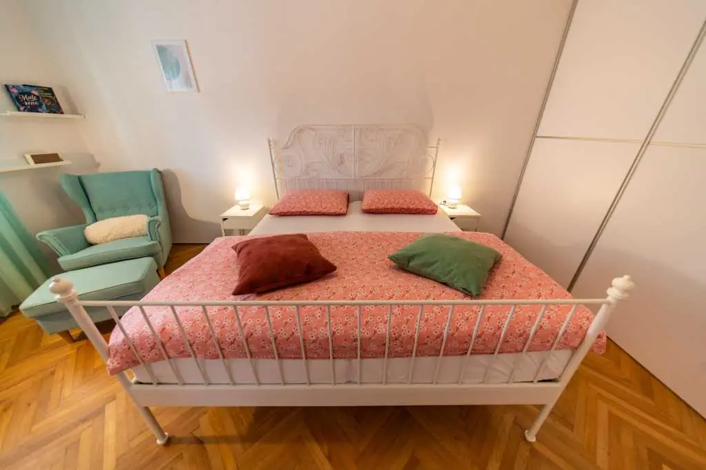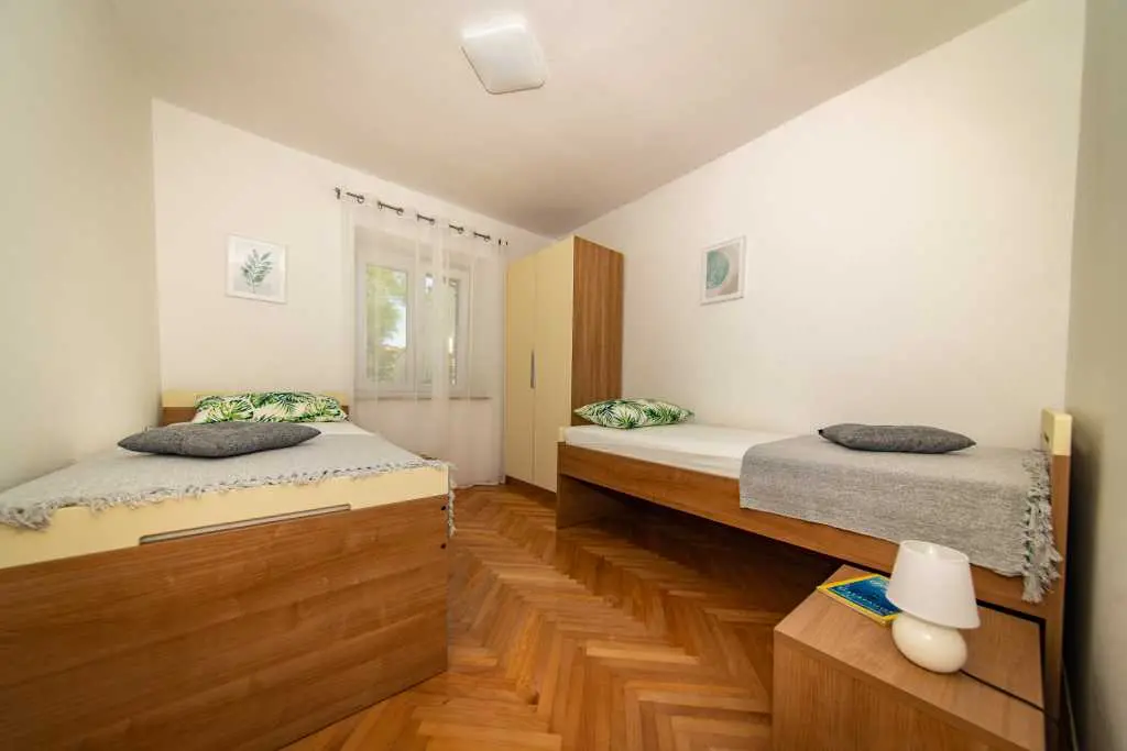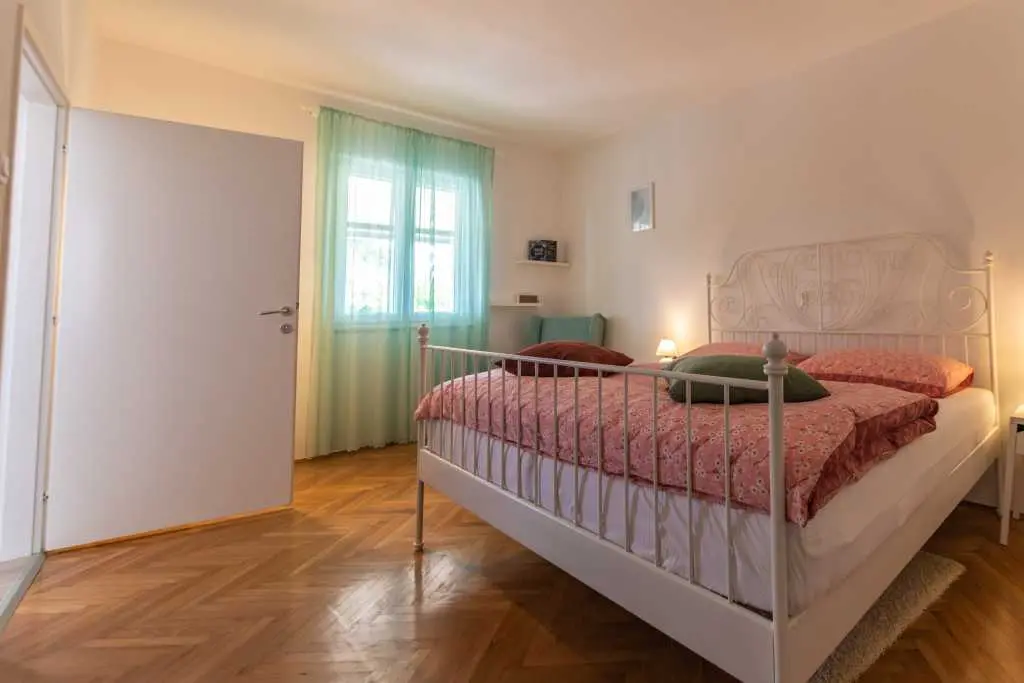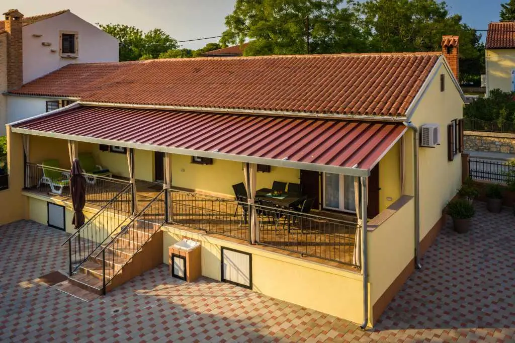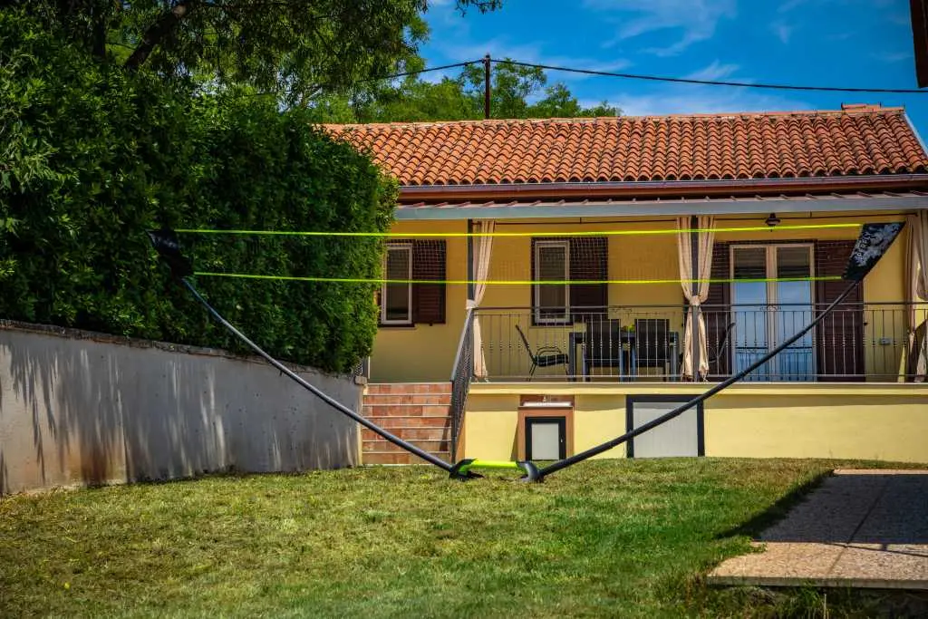 Vakantiehuis met 700 m2 tuin in Vinkuran, klein dorpje nabij Pula, Pješčana Uvala en Medulin. Geweldig voor gezinnen, sportliefhebbers en iedereen die op zoek is naar een rustige vakantie. De woning heeft 2 slaapkamers en is geschikt voor 6 personen (4 plus 2). Volledig gerenoveerd, heeft een ruime woonkamer met keuken en een groot terras met barbecue. Voor het huis is er een grote afgesloten parkeerplaats met voldoende ruimte voor uw aanhanger / fiets en meer. Gasten hebben toegang tot alle delen van het huis en een grote tuin met een parkeerplaats. Beschrijving van de accommodatie: Slaapkamer 1 - 1 tweepersoonsbed, 1 babybed Slaapkamer 2 - 2 eenpersoonsbedden Gedeelde faciliteiten - 1 slaapbank Kinderbed Binnenplaats: barbecue (gas) Terras (40 m2). Trampoline (3m), tuin / park Gratis parkeren in faciliteit. Groot genoeg voor 4 voertuigen en / of een trailer voor een boot, fietsen etc.