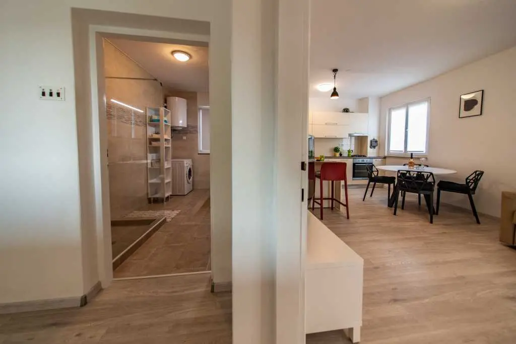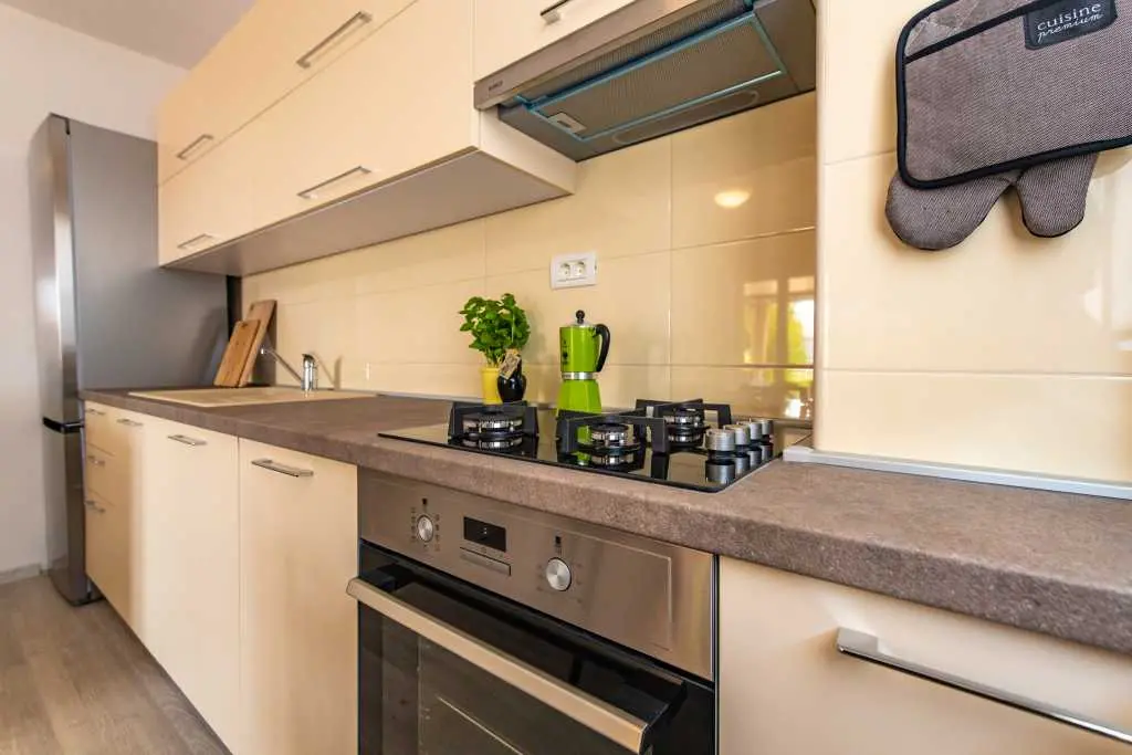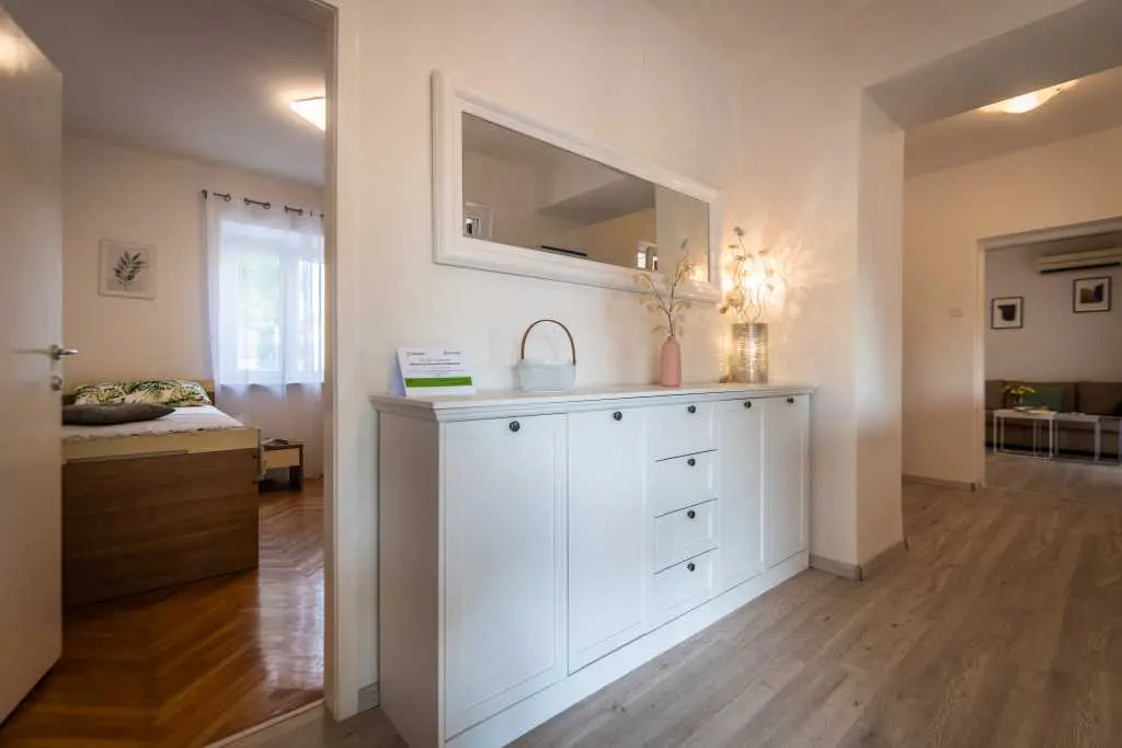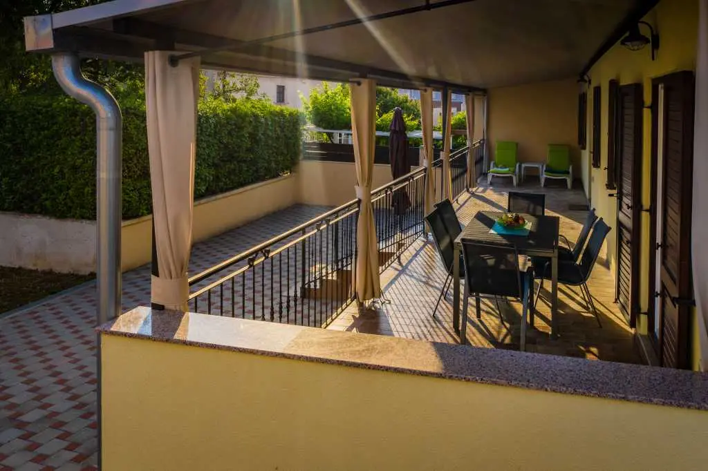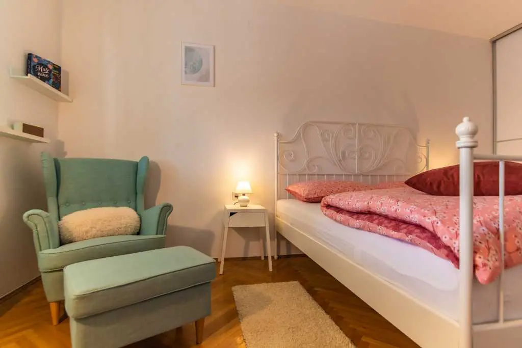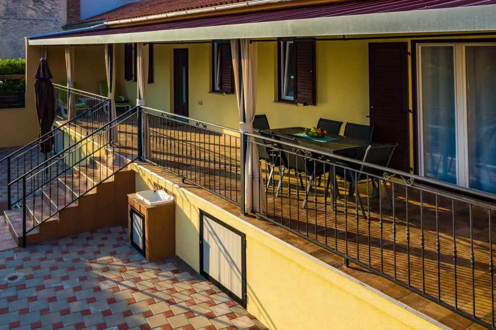 Vakantiehuis met 700 m2 tuin in Vinkuran, klein dorpje nabij Pula, Pješčana Uvala en Medulin. Geweldig voor gezinnen, sportliefhebbers en iedereen die op zoek is naar een rustige vakantie. De woning heeft 2 slaapkamers en is geschikt voor 6 personen (4 plus 2). Volledig gerenoveerd, heeft een ruime woonkamer met keuken en een groot terras met barbecue. Voor het huis is er een grote afgesloten parkeerplaats met voldoende ruimte voor uw aanhanger / fiets en meer. Gasten hebben toegang tot alle delen van het huis en een grote tuin met een parkeerplaats. Beschrijving van de accommodatie: Slaapkamer 1 - 1 tweepersoonsbed, 1 babybed Slaapkamer 2 - 2 eenpersoonsbedden Gedeelde faciliteiten - 1 slaapbank Kinderbed Binnenplaats: barbecue (gas) Terras (40 m2). Trampoline (3m), tuin / park Gratis parkeren in faciliteit. Groot genoeg voor 4 voertuigen en / of een trailer voor een boot, fietsen etc.